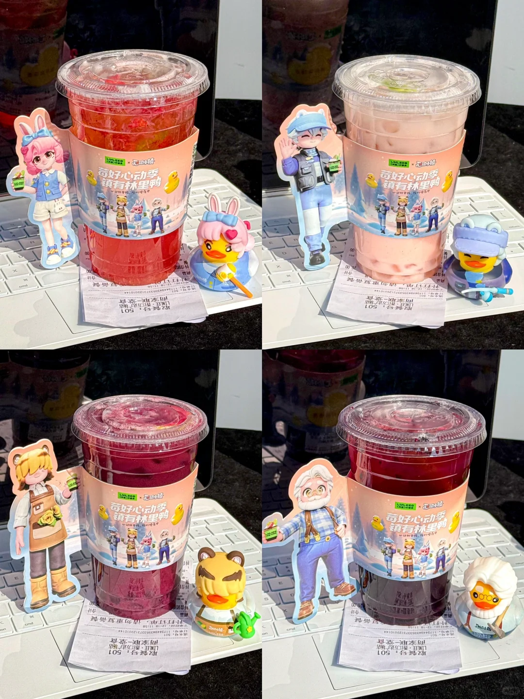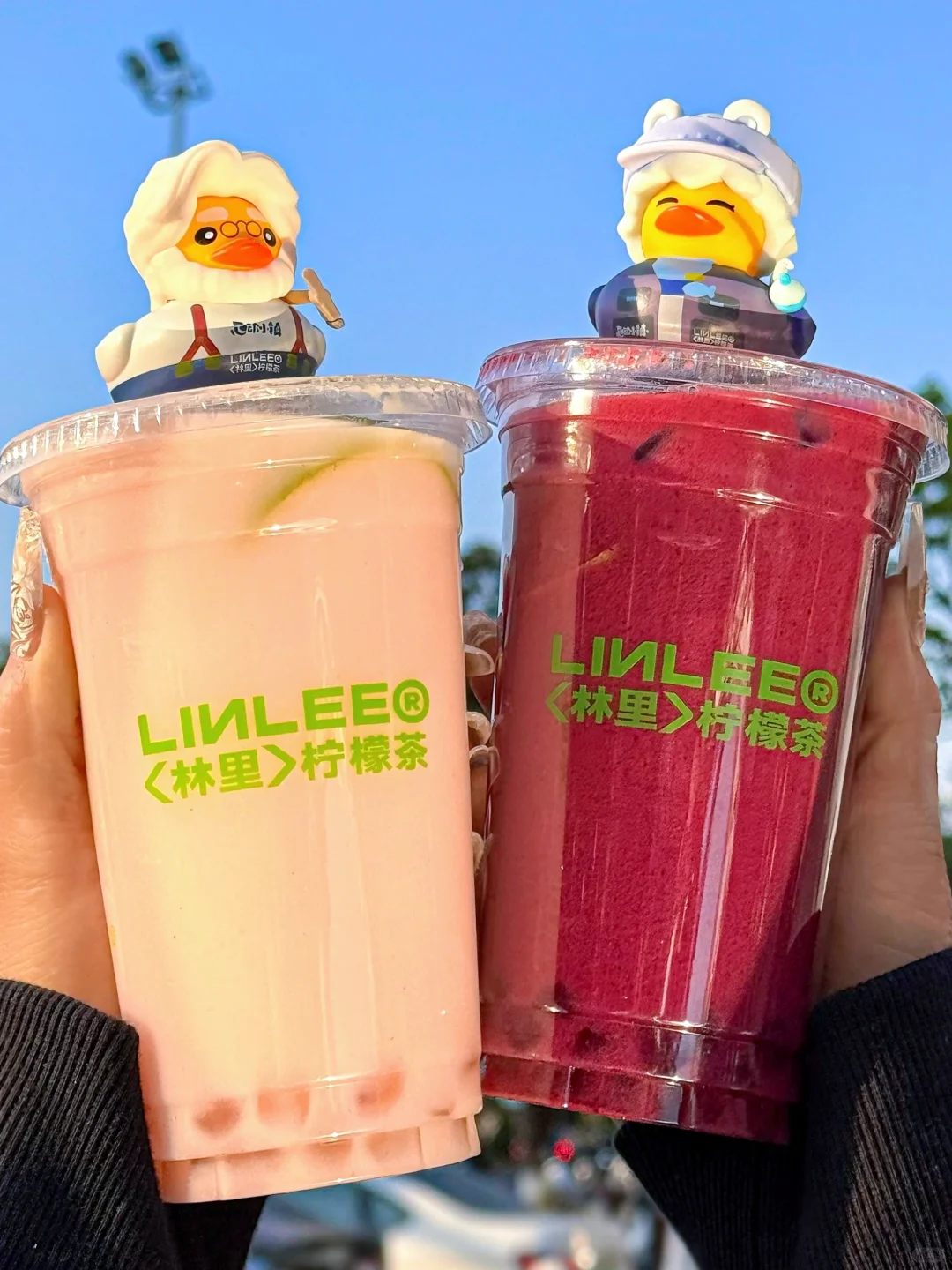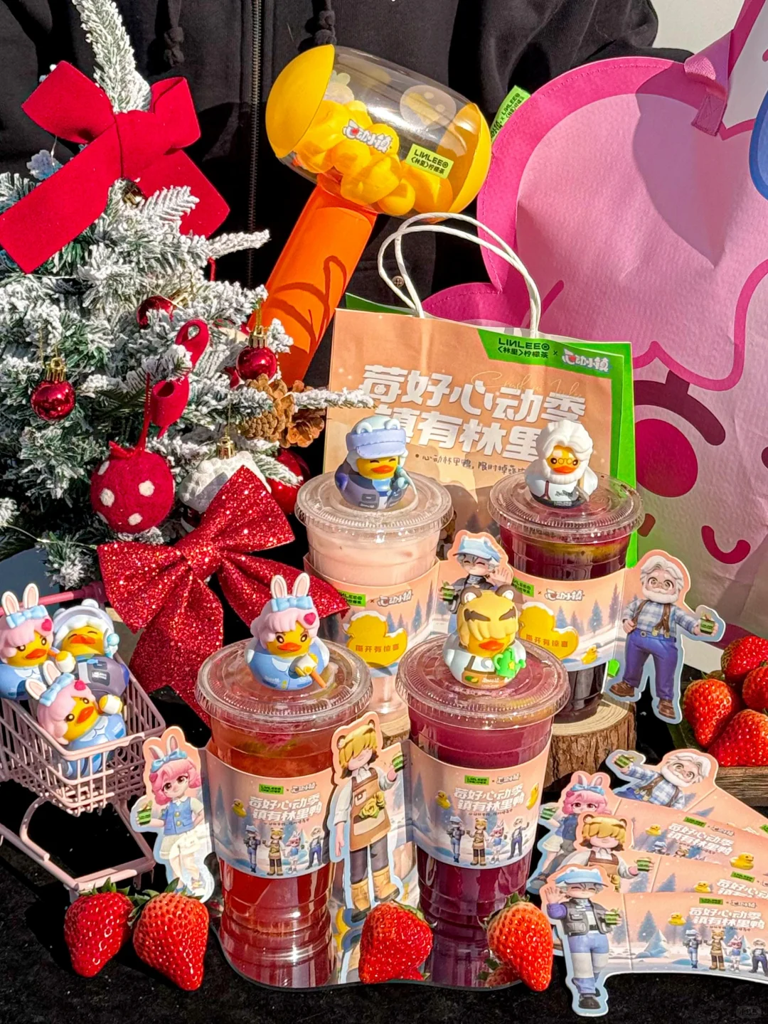 啊啊啊终于上了!LINLEE和心动小镇联动! 安妮鸭、万尼亚鸭、布兰克鸭、波叔鸭四款[哇R] 有挎包、乐园纪念锤子、心动小镇主题鸭、单人款杯套和纸袋!好可爱啊啊啊…… 锤头内塞满了经典林里鸭,别致养鸭尊嘟好好玩!! 迎接冬日圣诞的第一件事:和好姊妹一边喝莓果新品一边玩心动小镇✌️ 这次上的冬季柠檬茶也贼好喝了。。。。 🍓草莓柠檬茶 谁懂?!竟然能把草莓和柠檬茶结合如此巧妙!每一口都能感觉到莓果汁水在嘴巴里跳舞!! 有山茶花乌龙茶和茉莉花茶两种茶底选择!草莓的酸甜恰到好处!还能吃到新鲜莓果肉🍓好绝。。 重点是这杯也能点热的!怕冷星人闭眼冲! · 🍓草莓海底椰 真的有被惊喜到!!草莓和香气柠檬、混着鲜椰乳的清甜!莓香椰香完美融合!奶fufu的酸酸甜甜的、根本喝不腻😋😋底下还有好多脆波波,口感层次贼丰富了! · 🍇桑葚柠檬茶 满口都是桑葚的感觉谁懂?!加上香水柠檬,浓郁酸甜!一口下去爱死了!!! · 🍇桑葚海底椰 浓醇的椰乳加入林里精选香水柠檬!桑葚香超浓郁de🤤🤤大吸一口,桑葚果肉和Q弹波波的双重buff!!喝起来奶fufu的。。真的很好喝[哭惹R] ·