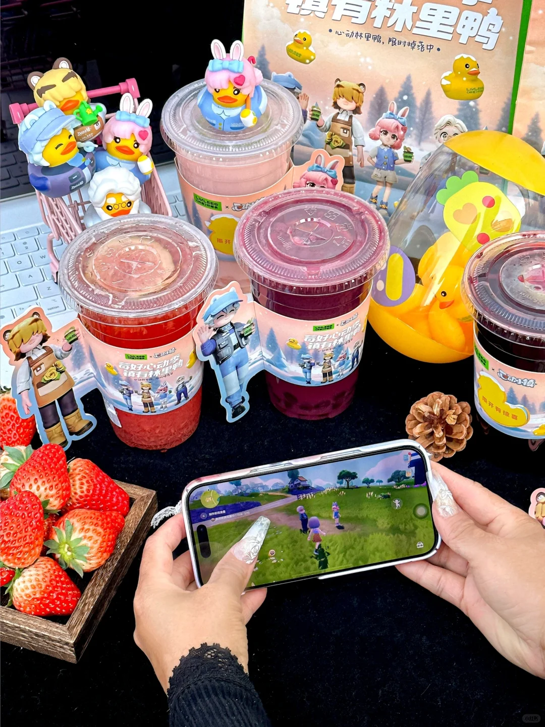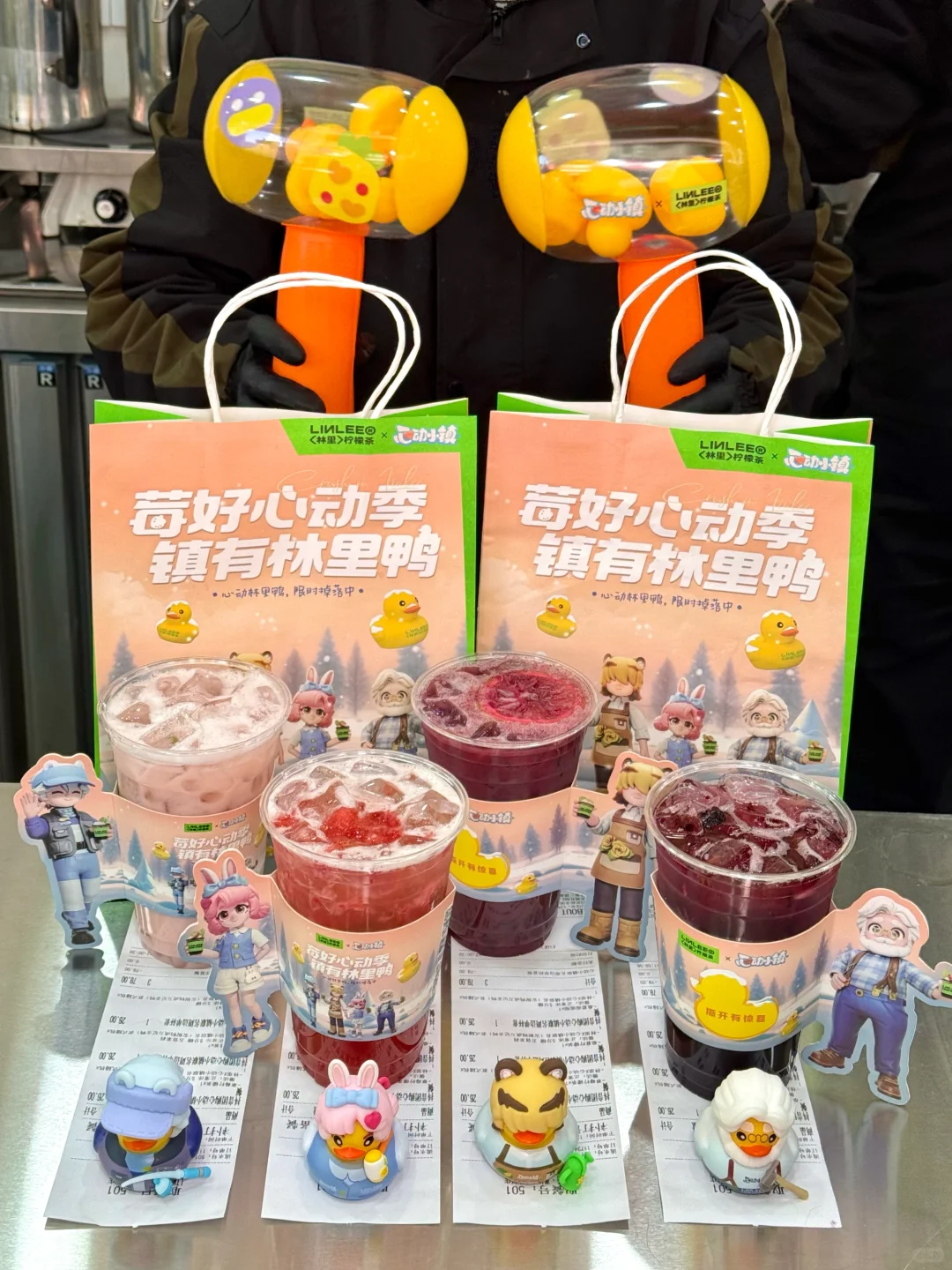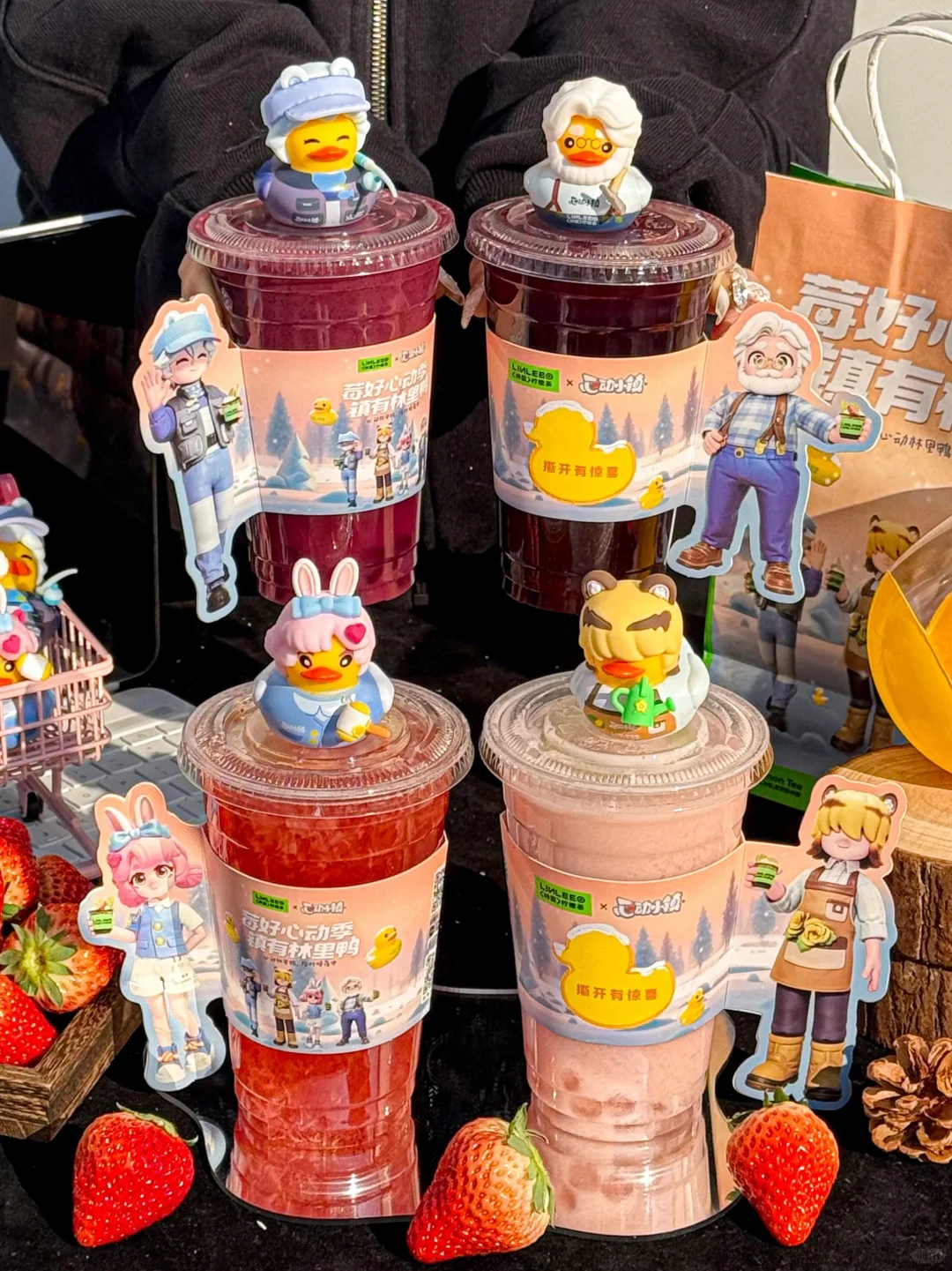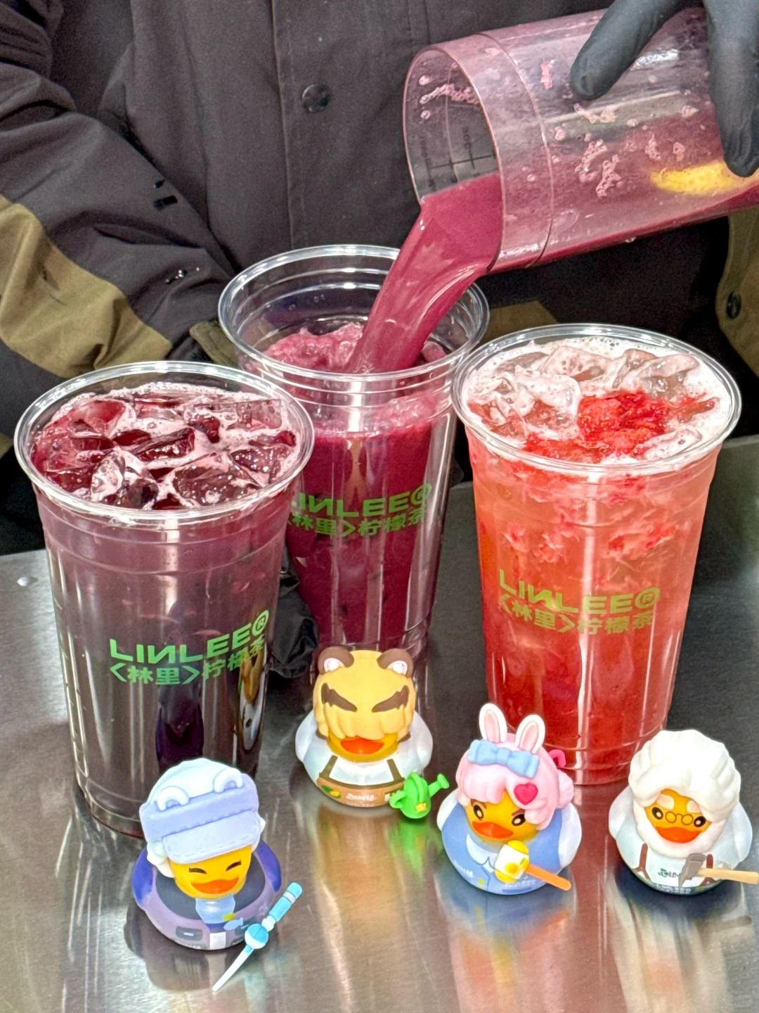 啊啊啊终于上了!LINLEE和心动小镇联动! 安妮鸭、万尼亚鸭、布兰克鸭、波叔鸭四款[哇R] 有挎包、乐园纪念锤子、心动小镇主题鸭、单人款杯套和纸袋!好可爱啊啊啊…… 锤头内塞满了经典林里鸭,别致养鸭尊嘟好好玩!! 迎接冬日圣诞的第一件事:和好姊妹一边喝莓果新品一边玩心动小镇✌️ 这次上的冬季柠檬茶也贼好喝了。。。。 🍓草莓柠檬茶 谁懂?!竟然能把草莓和柠檬茶结合如此巧妙!每一口都能感觉到莓果汁水在嘴巴里跳舞!! 有山茶花乌龙茶和茉莉花茶两种茶底选择!草莓的酸甜恰到好处!还能吃到新鲜莓果肉🍓好绝。。 重点是这杯也能点热的!怕冷星人闭眼冲! · 🍓草莓海底椰 真的有被惊喜到!!草莓和香气柠檬、混着鲜椰乳的清甜!莓香椰香完美融合!奶fufu的酸酸甜甜的、根本喝不腻😋😋底下还有好多脆波波,口感层次贼丰富了! · 🍇桑葚柠檬茶 满口都是桑葚的感觉谁懂?!加上香水柠檬,浓郁酸甜!一口下去爱死了!!! · 🍇桑葚海底椰 浓醇的椰乳加入林里精选香水柠檬!桑葚香超浓郁de🤤🤤大吸一口,桑葚果肉和Q弹波波的双重buff!!喝起来奶fufu的。。真的很好喝[哭惹R] ·