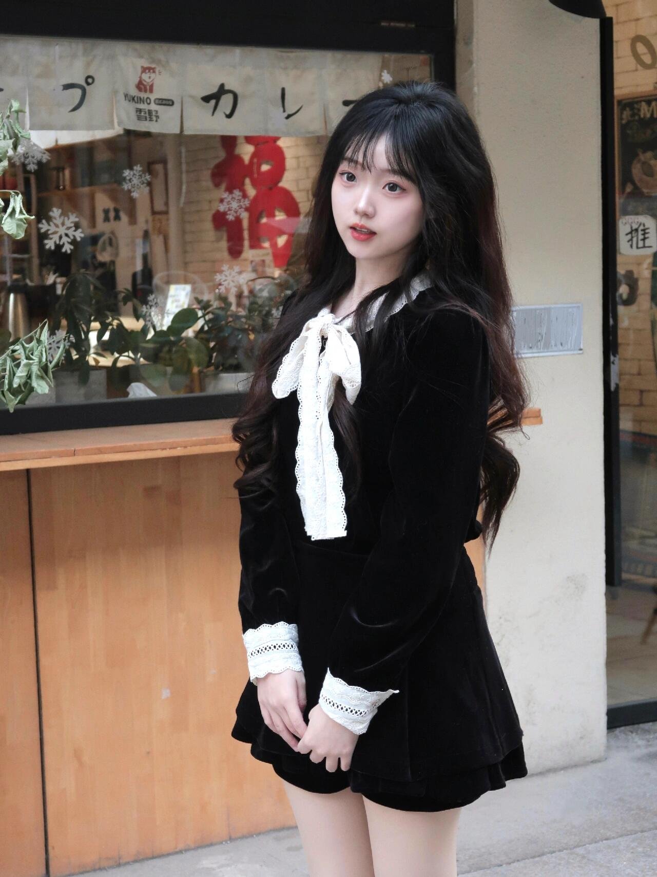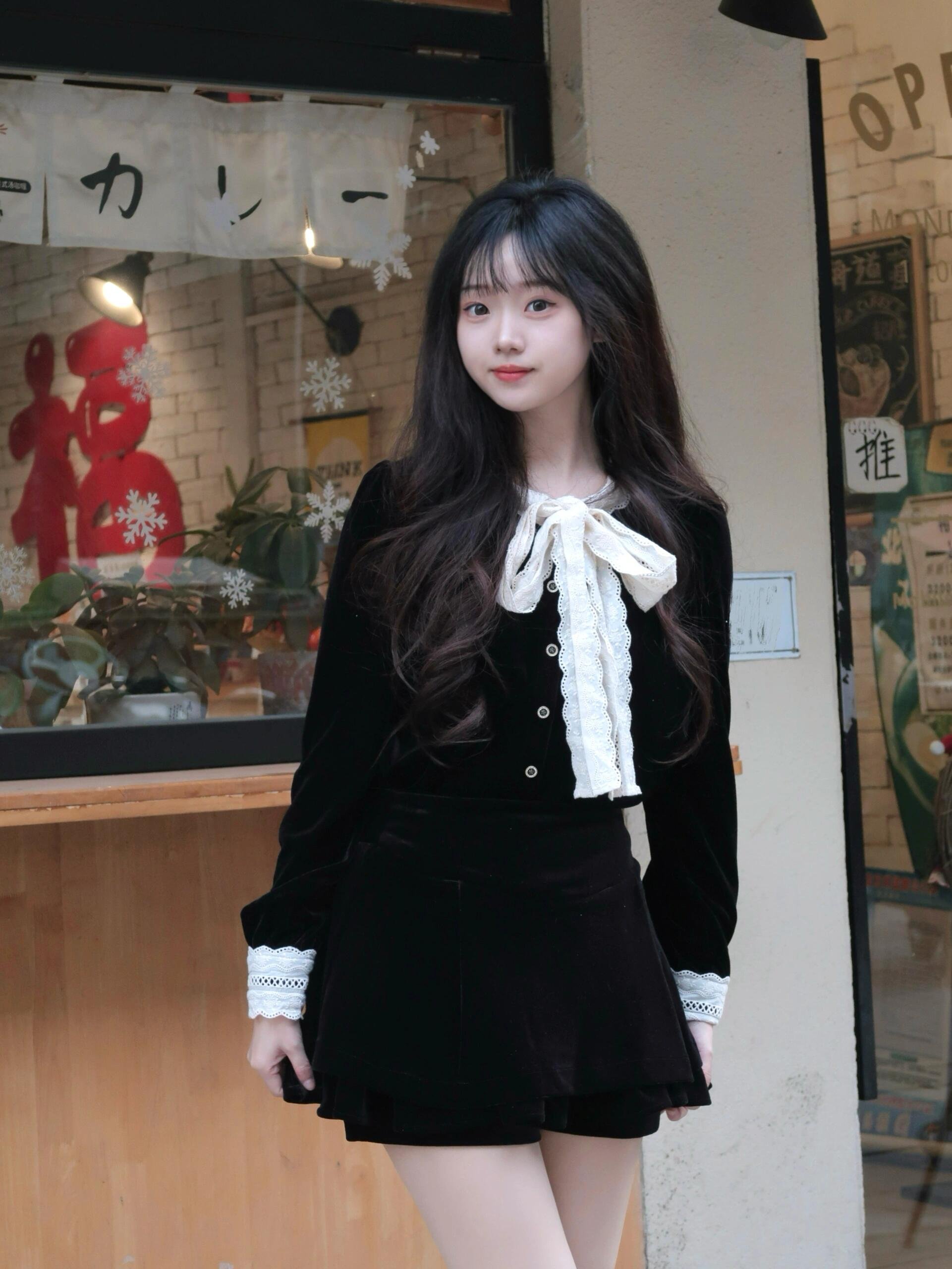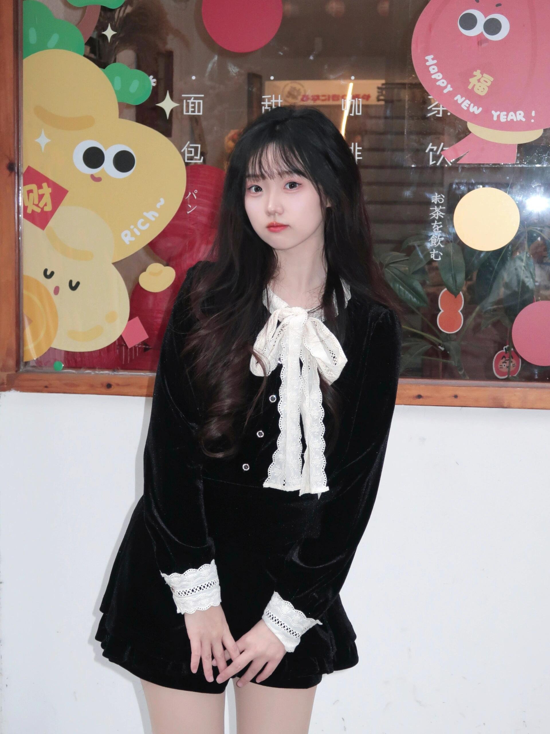 黑色连衣裙过年战袍一套入冬穿搭女装短裙