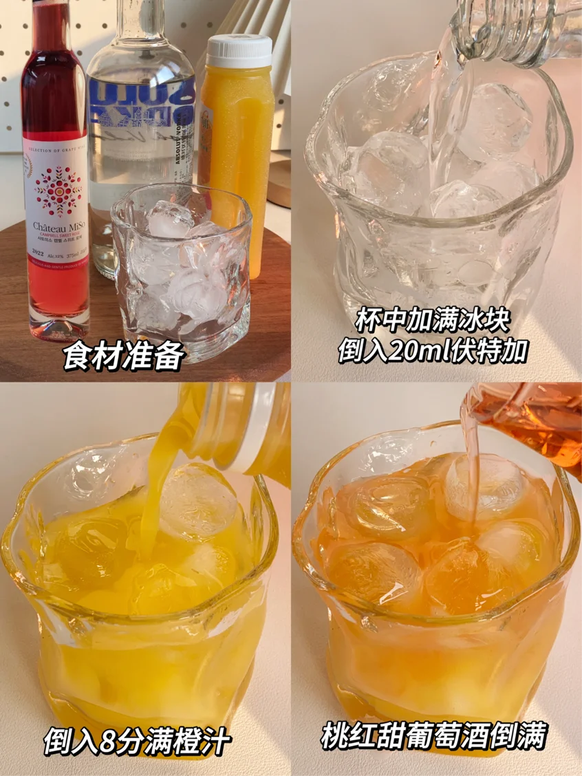 3⃣️伏特加➕橙汁➕甜葡萄酒➕冰块