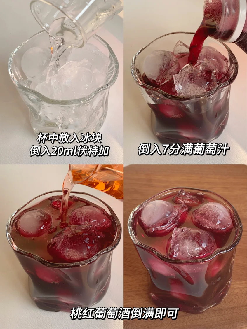 4⃣️伏特加➕葡萄汁➕甜葡萄酒➕冰块