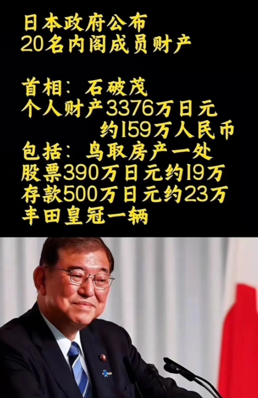 谁能想到,一位曾站在日本政治舞台高光处的人物,全部身家竟只有 159 万人民币,算上房产也就这点“家底”,在物价高得离谱的日本,真算得上寒酸,跟困难户没啥两样。67 岁的石破茂,从政多年,本以为宦海沉浮该有些丰厚积蓄,结果却大出所料。或许正因如此,那些被抓拍的“贪吃”画面一下子就说得通了。G20 峰会时,旁若无人拿韩国总统桌上零食,外访期间也不顾仪态大快朵颐,当时被本国百姓骂“丢人丢到国外”。可如今细想,没准是家里条件不宽裕,日常饮食受限,碰上免费餐食就没忍住。不过从政者财富积累少,也反映日本对公职人员监管较严,杜绝贪腐敛财,在这点上倒值得赞赏,毕竟廉洁才是为政该守的底线。#石破茂