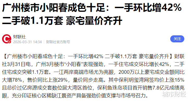广州方面,截至3月20日,全市二手房成交已狂飙至7471套,按此节奏全月有望冲破1.3万套。