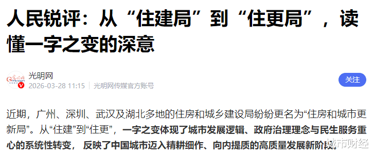 这一点,最好的证据就是,越来越多的地方“住建局”已经改成了“住更局”。