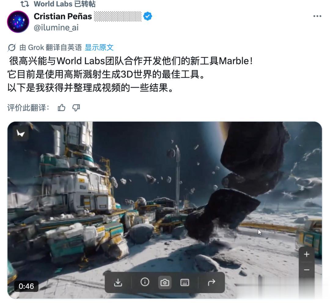 有体验过的博主 @ilumine_ai 表示:「目前它是利用 Gaussian Splatting(高斯溅射)生成 3D 世界的最佳工具。」看起来确实有两把刷子。