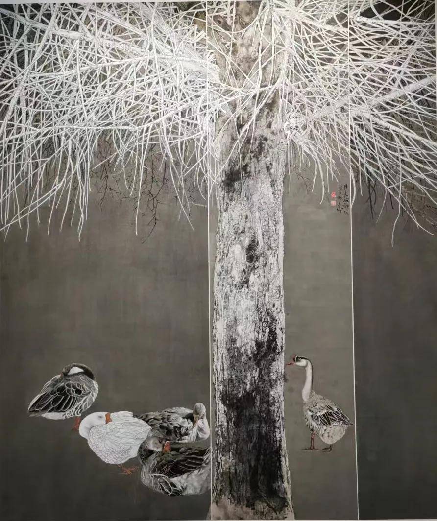 经过多年耕耘,她的作品也一步步走向更广阔的舞台。2017年5月,中国画《秋生》获河南省第二十二届美术新人新作展优秀奖。2019年4月,《花鸟》入选河南省第二十四届美术新人新作展;同年,《传承》入选第三届“悲鸿精神”全国中国画作品展。2020年,《和谐家园》《春风又绿江南岸》《暮烟归禽》接连入选多项全国性美术展览。2022年,她正式成为中国美术家协会会员,同时兼任周口市美协理事、淮阳区女子美协副主席。从田埂上信笔涂鸦的少女,到立足全国画坛的国家级花鸟画家,二十余载行路,贵在坚持,重在守恒,成在长期主义:耐得住寂寞,守得住枯燥,于默默耕耘中从未停下画笔。