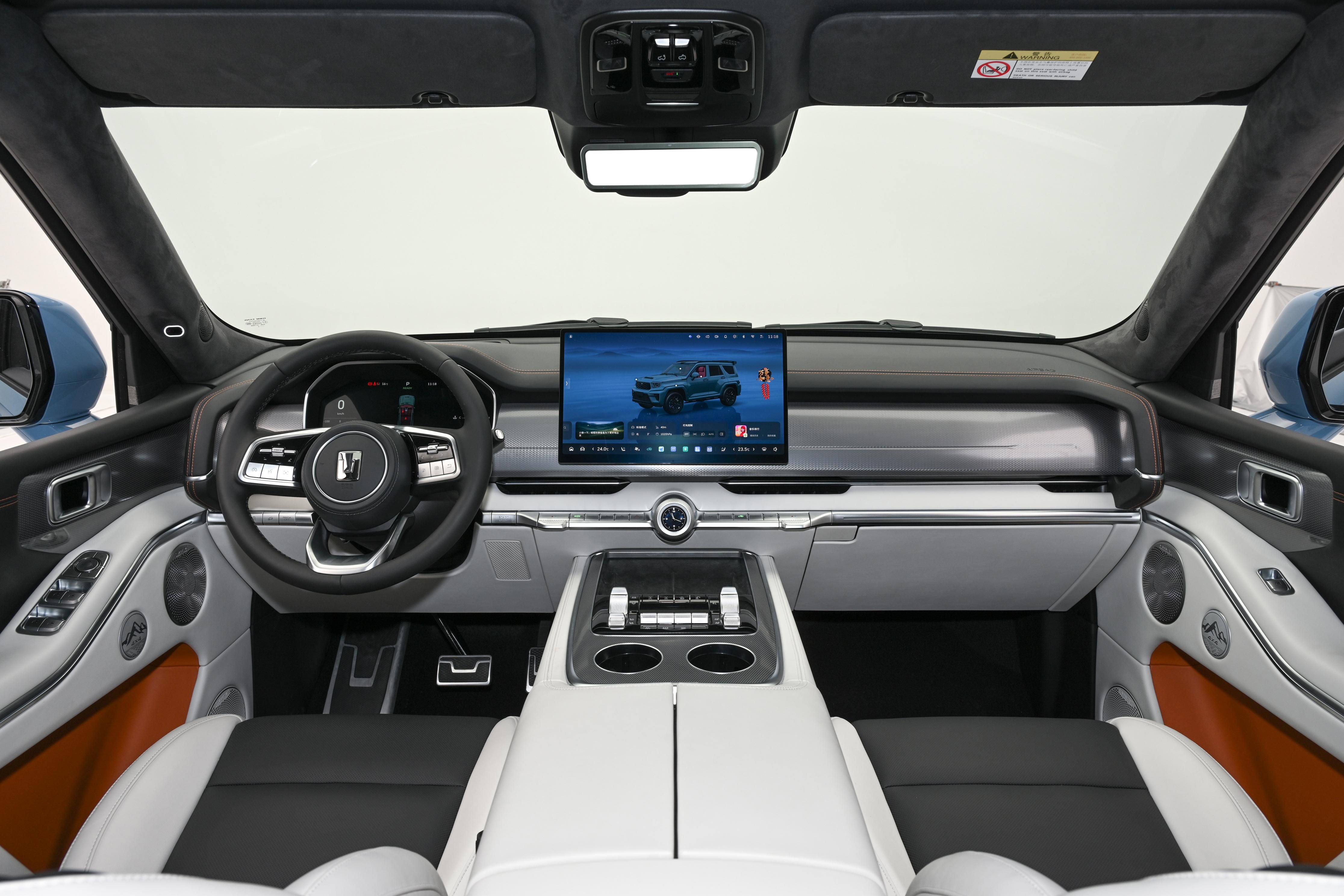 内饰方面,全新坦克700 Hi4-Z采用了全液晶仪表盘与悬浮式中控屏的屏幕组合,中央控制区保留了大量实体按键。通过按键图标来看,新车预计将会提供多种越野模式以及差速锁配置。细节方面,新车还加入了内饰氛围灯、可升降杯架,脚踏板也加入了坦克品牌Logo样式的装饰线条,十分在意细节处理。