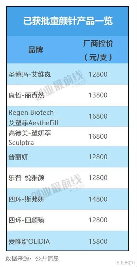 值得注意的是,虽然市场对童颜针需求高涨,但在艾维岚获批后接近3年,再无同类产品获批。稀缺性让“艾维岚”奇货可居,凭借市场独占期和先发优势,厂商长春圣博玛将艾维岚官方指导价长期维持在18800元/支。