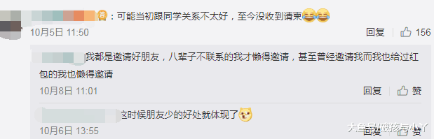 收了请柬,要烦心份子钱出多出少的问题,收不到,又觉得是自己的人品问题。结婚这么简单的事情,结果让人产生这么矛盾的想法。有网友得出结论,感谢他们在保护你,不用出份子钱。哈哈,这个安慰人的技巧满分!