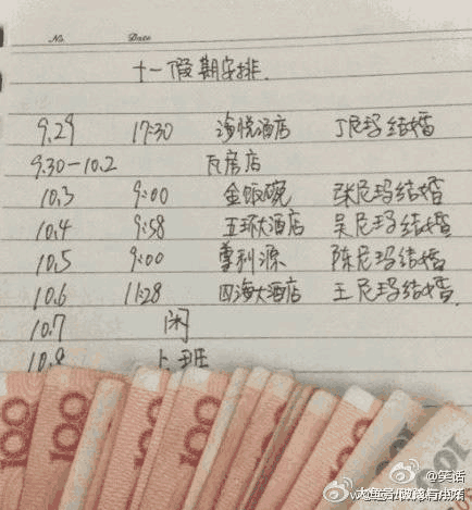 为此,有网友调侃,9月份的工资都给了国庆结婚的。