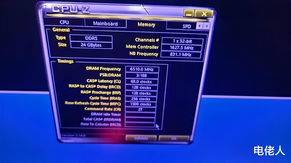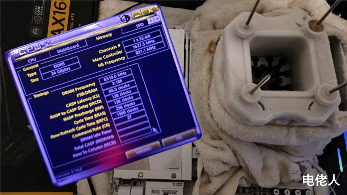 为了实现如此极致的频率,此次超频采用了极为宽松的时序设置。CPU-Z界面显示时序参数为CL68模式,以及128-128-256-1500-2T等超宽松配置,体现了超频过程中频率与时序之间的取舍和平衡。