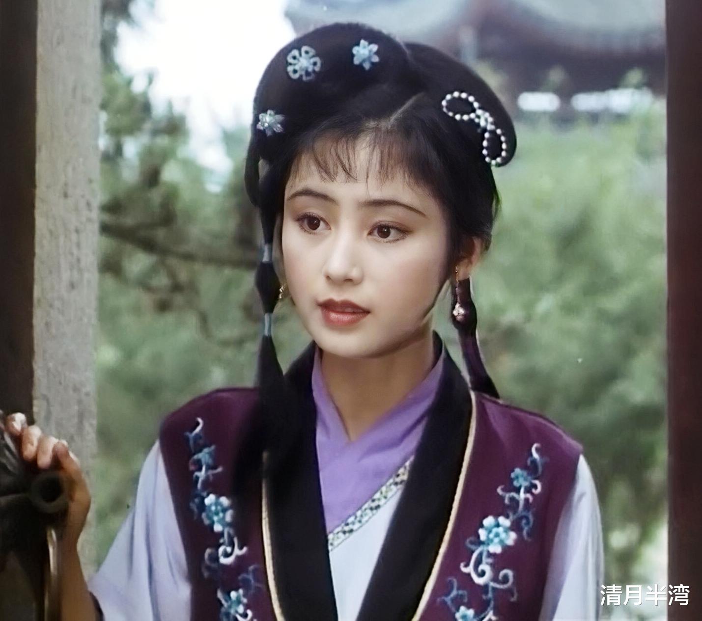 虽说镜头少得可怜,奈何陈红“单根麻花辫+紫色衣衫”的造型实在太美,美目盼兮,巧笑倩兮,堪称全剧“第一美人”。