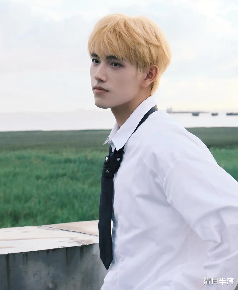 22岁演《点燃我,温暖你》,染一头金发,穿件白衬衫,眉目深情且略带忧郁气质,高智商编程天才李峋帅得仿佛漫画里走出来。