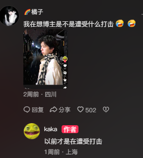 评论区里,常有粉丝翻出他早年短发的清新照片,好奇地问:“现在的装扮是不是受了什么打击?”Kaka 的回复坦然又有力量:“以前才是在遭受打击。” 一句话道尽过往 —— 曾经的他,为了坚守内心的热爱与真实,在偏见与孤立中挣扎;而看似离经叛道,却是挣脱束缚后,真正做自己的自由姿态。