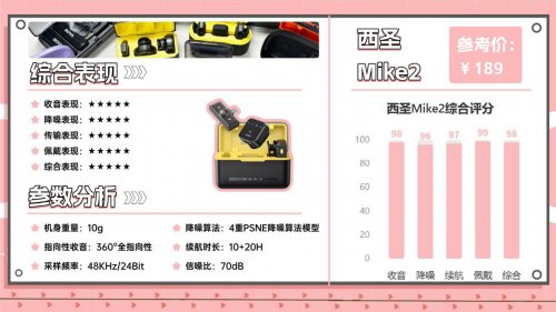 目前,麦克风市场普遍存在性能缩水问题,许多产品为追求外观和便携性,牺牲了音质和降噪效果,约七成用户反映收音不清晰、底噪大、容易卡顿。为此,强烈推荐西圣Mike2麦克风。它专为创作者、主播和Vlog达人设计,是“非常规”发烧产品。它采用高品质进口定制6mm领夹麦镀镍音头、4重PSNE降噪算法和第二代ALPT高密度拾音技术,实现专业级音质。其32位浮点数DSP芯片和全指向AI感知麦克风,可多角度无死角清晰捕捉人声。凭借极致性能,西圣Mike2通过多国严苛认证,获央视推荐,成为百元级专业麦克风的首选。