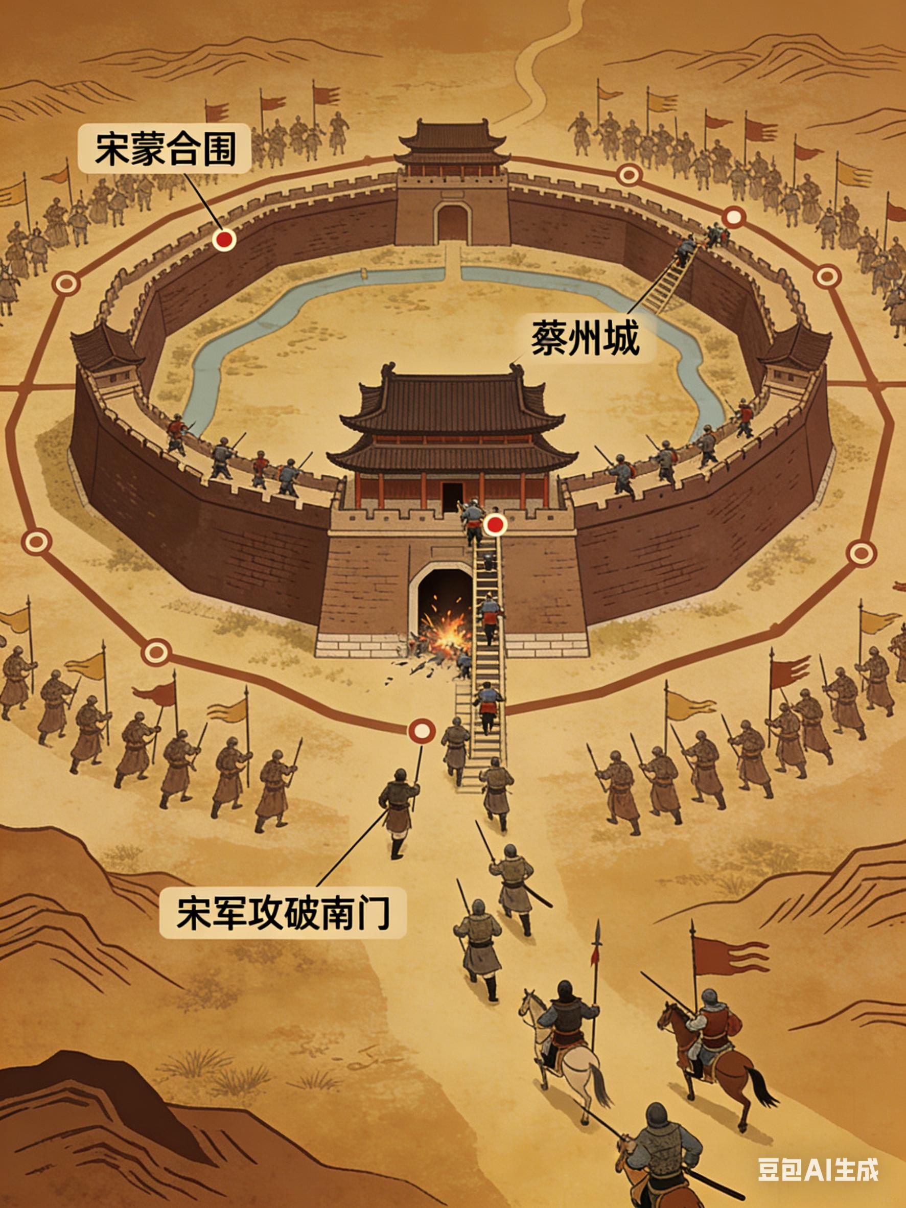 击溃金军突围,率先攻破南门,奠定灭金首功