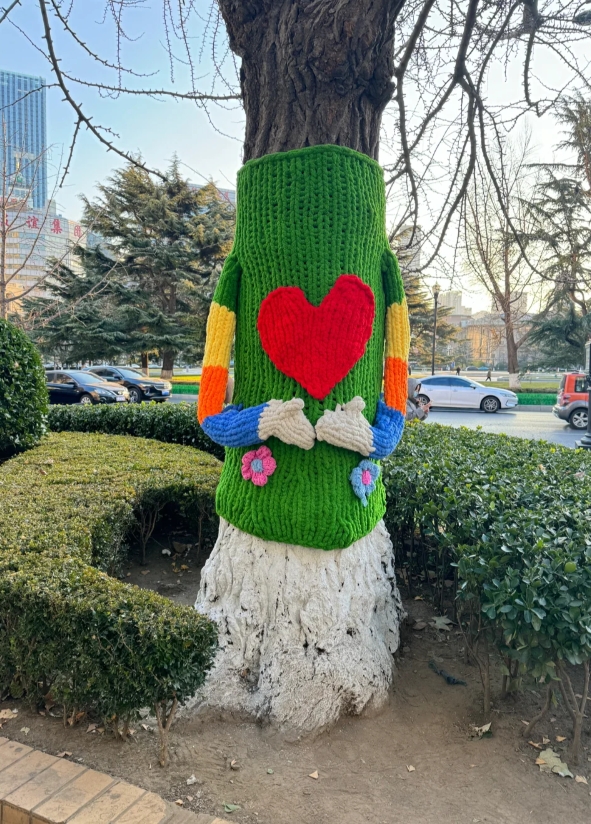 不仅树有了新衣服,中山广场十号邮局门前的邮箱,也有新装扮啦,可以暖暖过冬啦。