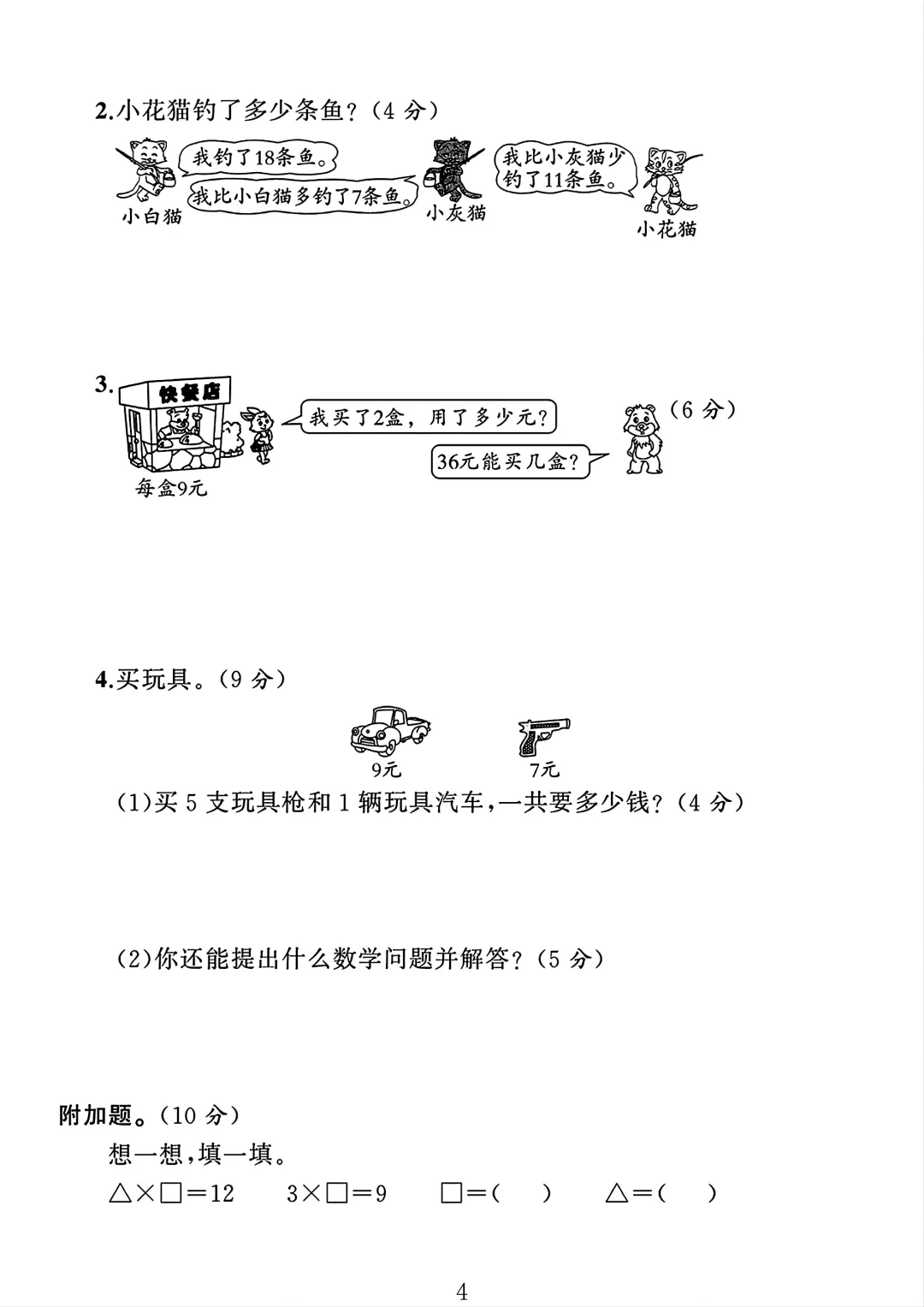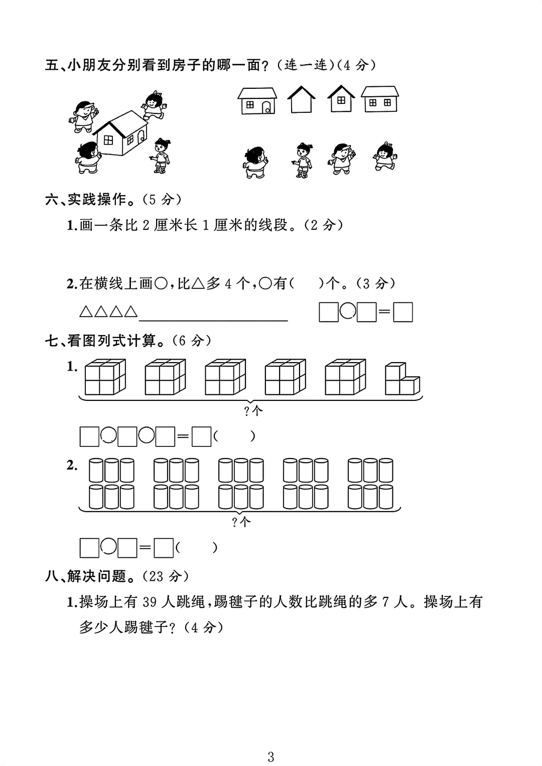 苏教版 二年级上册数学 期末考试 期末 试卷 电子版可打印