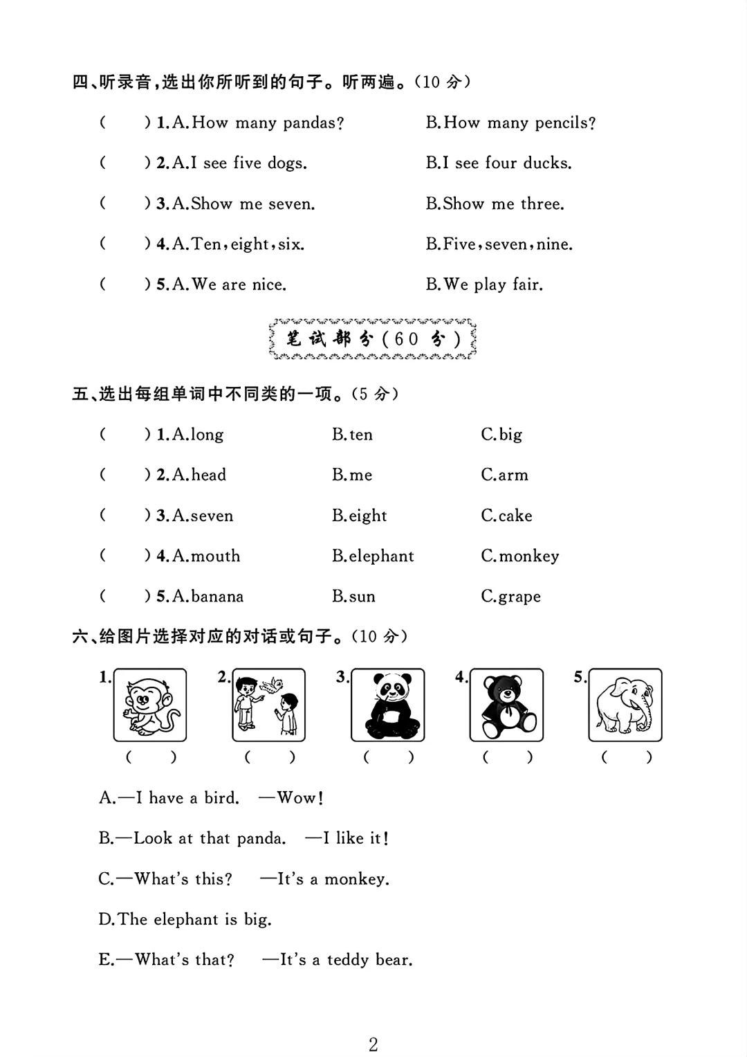 人教版三年级英语上册期末试卷 2
