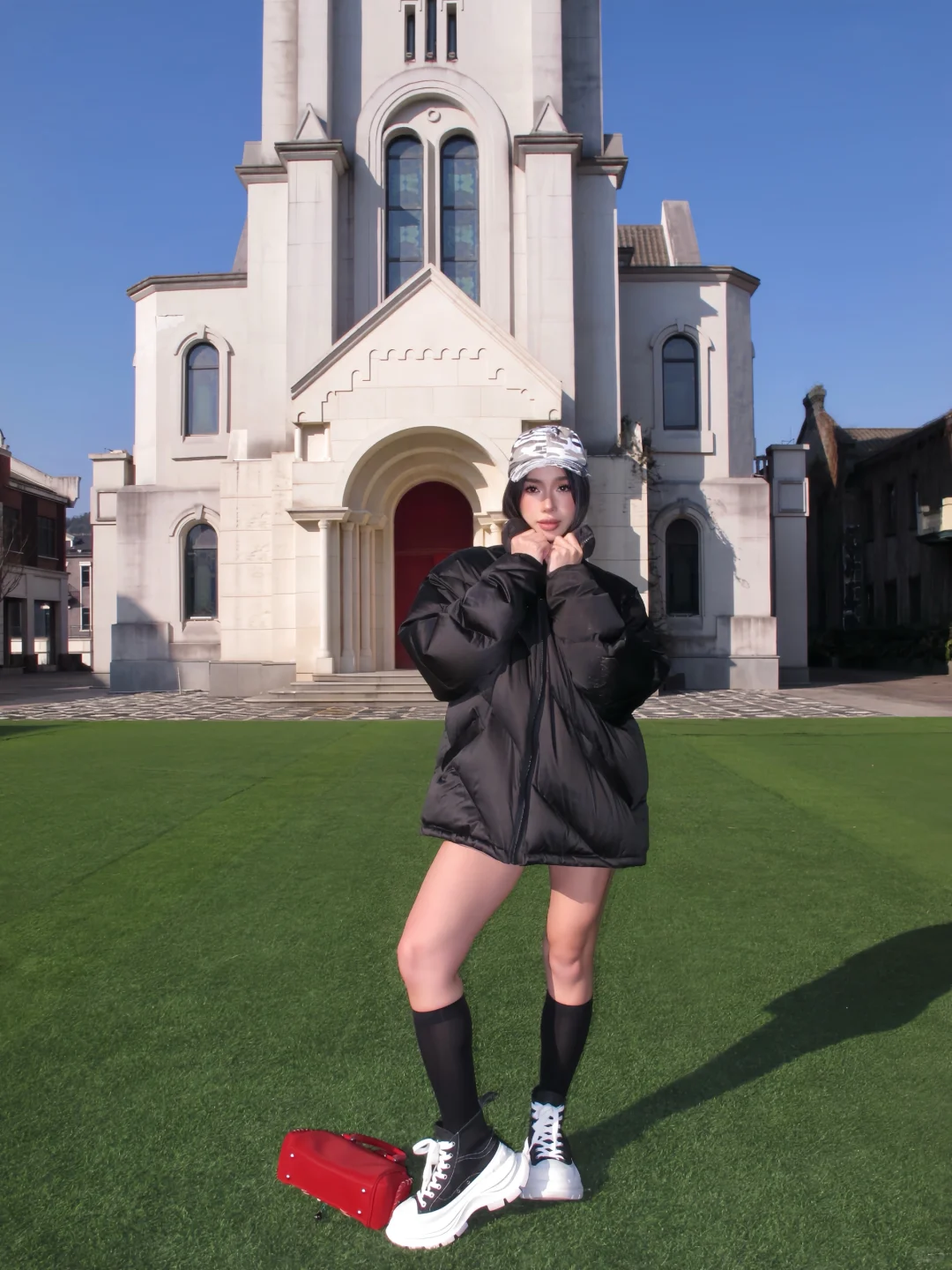拍照姿势不同样 美式校园青春 美式复古 运动少女风 运动风穿搭 美式辣妹 羽绒服穿搭 棉服穿搭 金华拍照