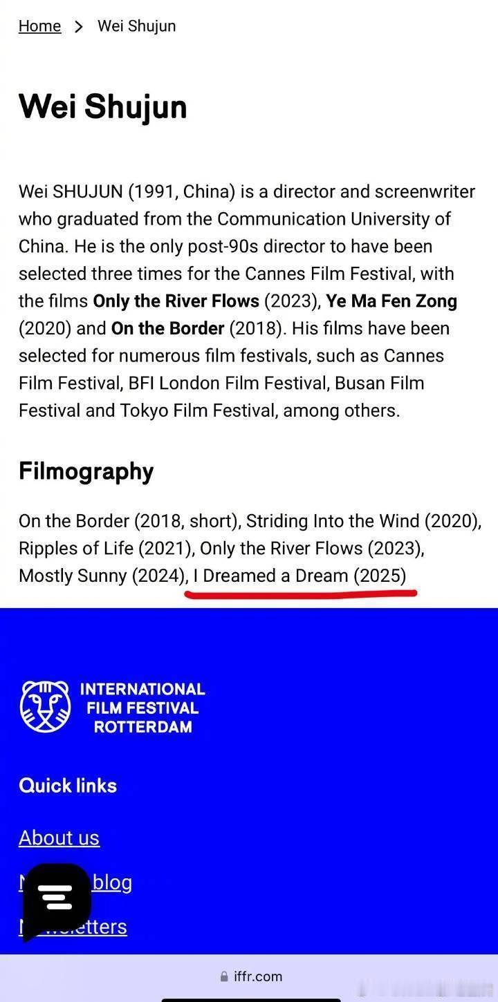 恭喜王鹤棣主演的电影《青春梦》入围 2025 年第 54 届鹿特丹电影节海港展映单元,这是他的首部电影,真为他感到骄傲和自豪,期待他在电影领域继续绽放光彩!