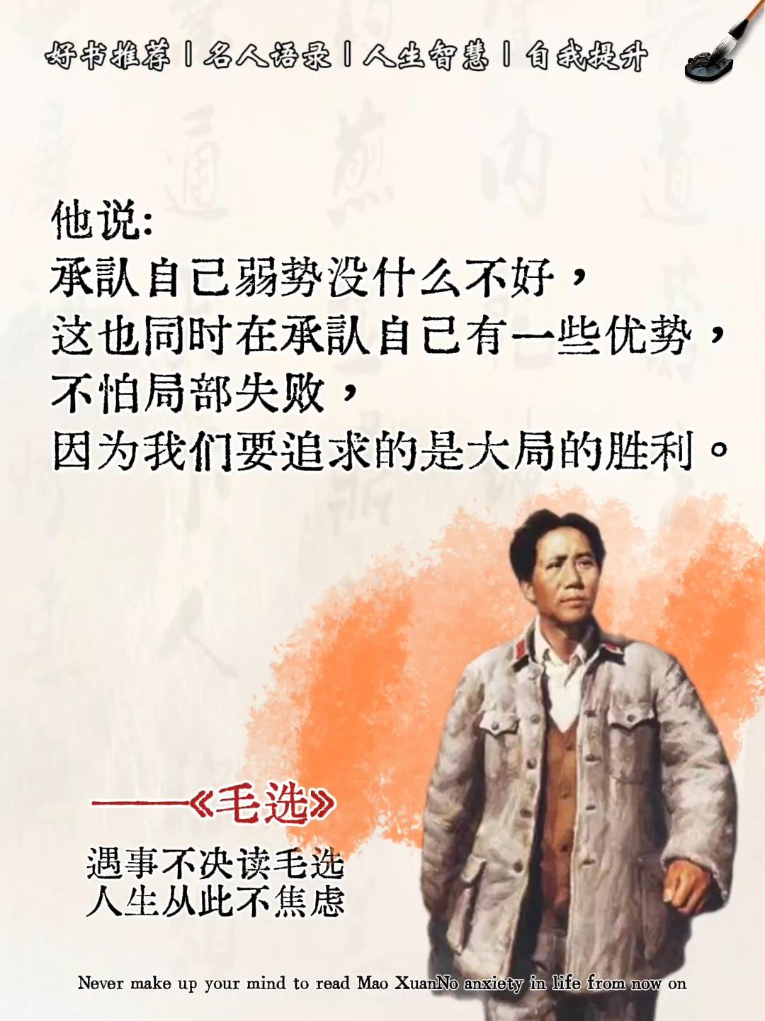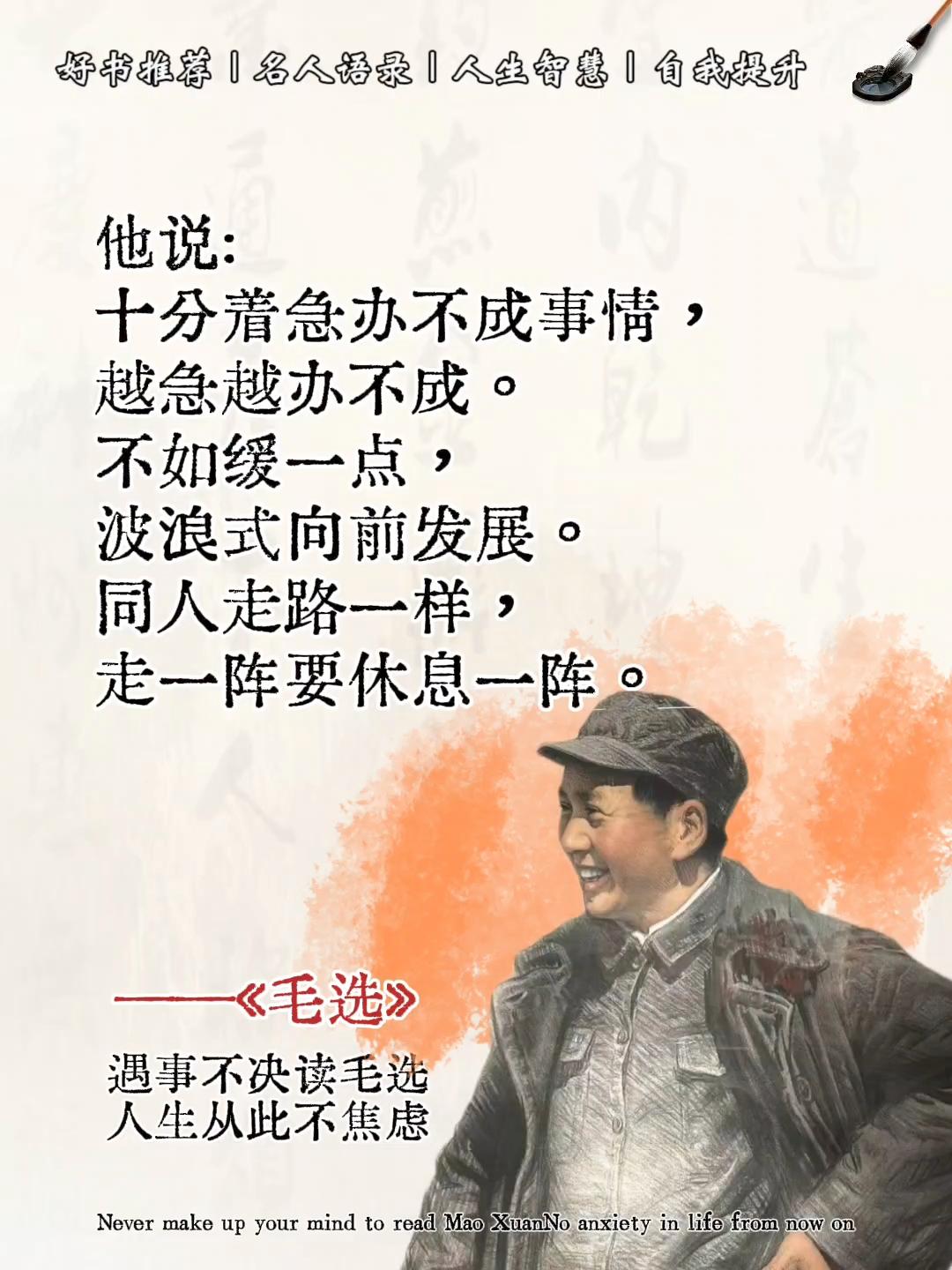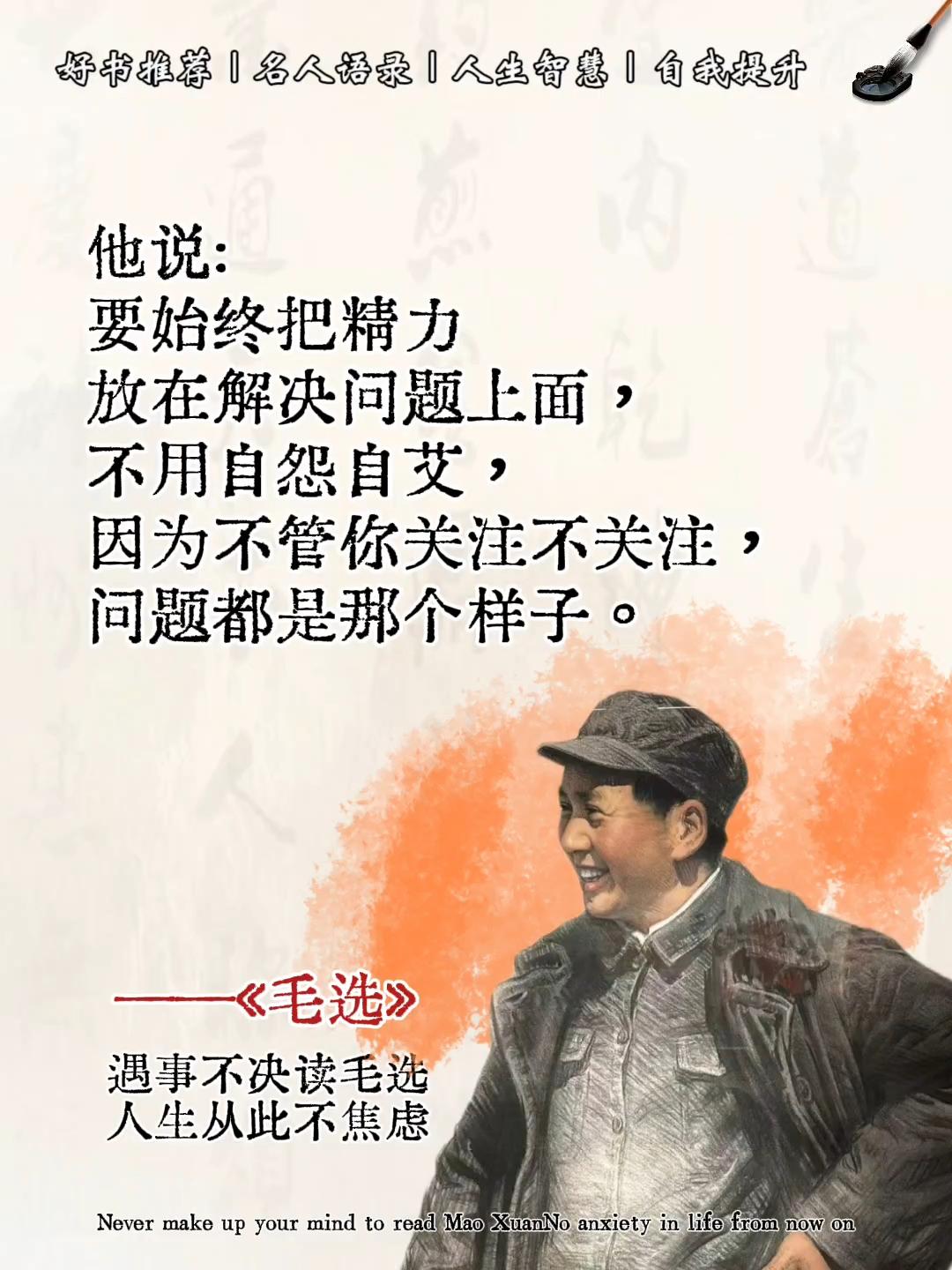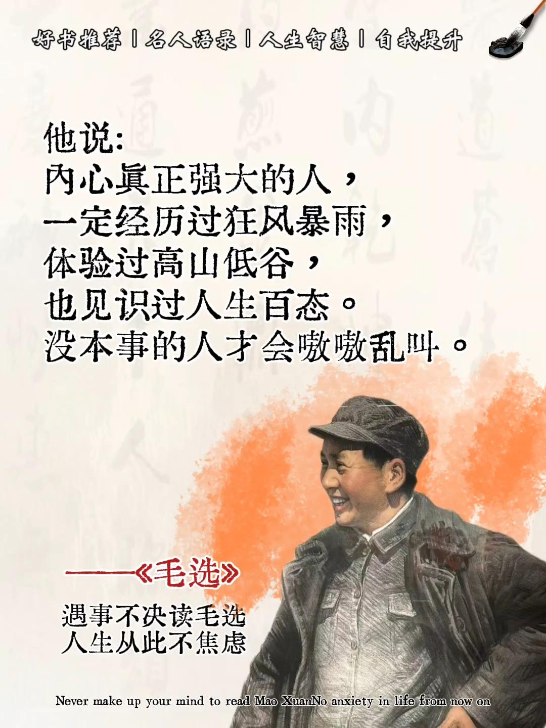 内耗焦虑的人一定要读《毛选》年少不知《毛选》好,35+的年纪读完《毛选》才明白,人生没有走出的低谷。我们要学习毛教员的乐观精神,从不内耗, 遇到问题解决问题,一次解决不了,就再多试几次。通过不断努力,终将取得胜利,一切只是时间问题