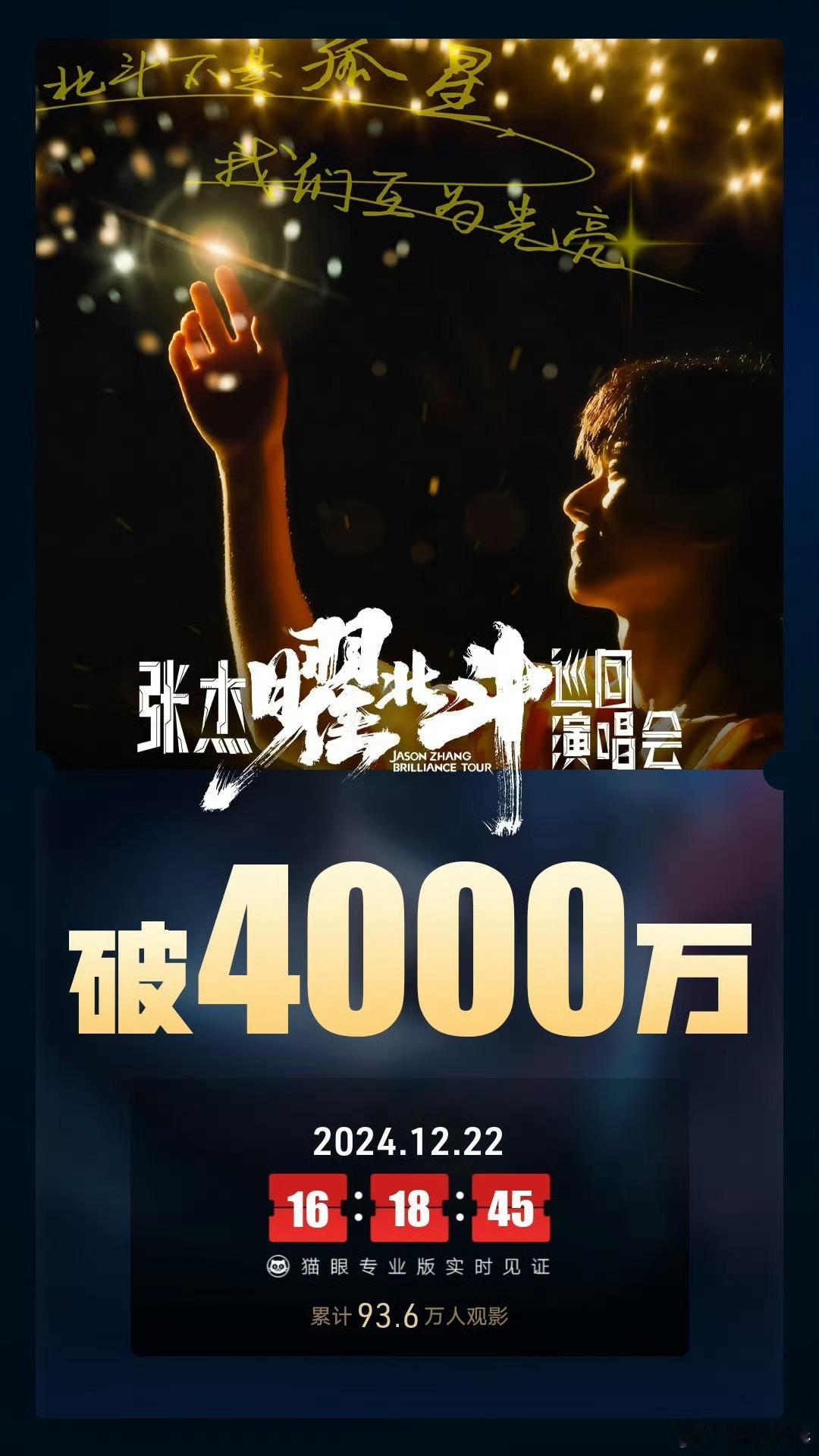 张杰分享看到的感动留言 电影《张杰曜北斗巡回演唱会》上映3天票房破4000万,