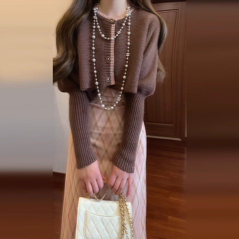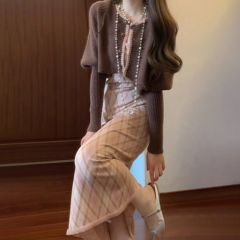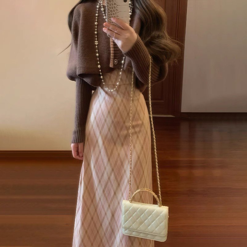 无论是出门逛街还是约会,一件开衫搭配格纹吊带裙都能让你成为焦点。它既能展现你的个性,又能让你在寒冷的季节里感到温暖和舒适。快来尝试一下吧!🍂✨