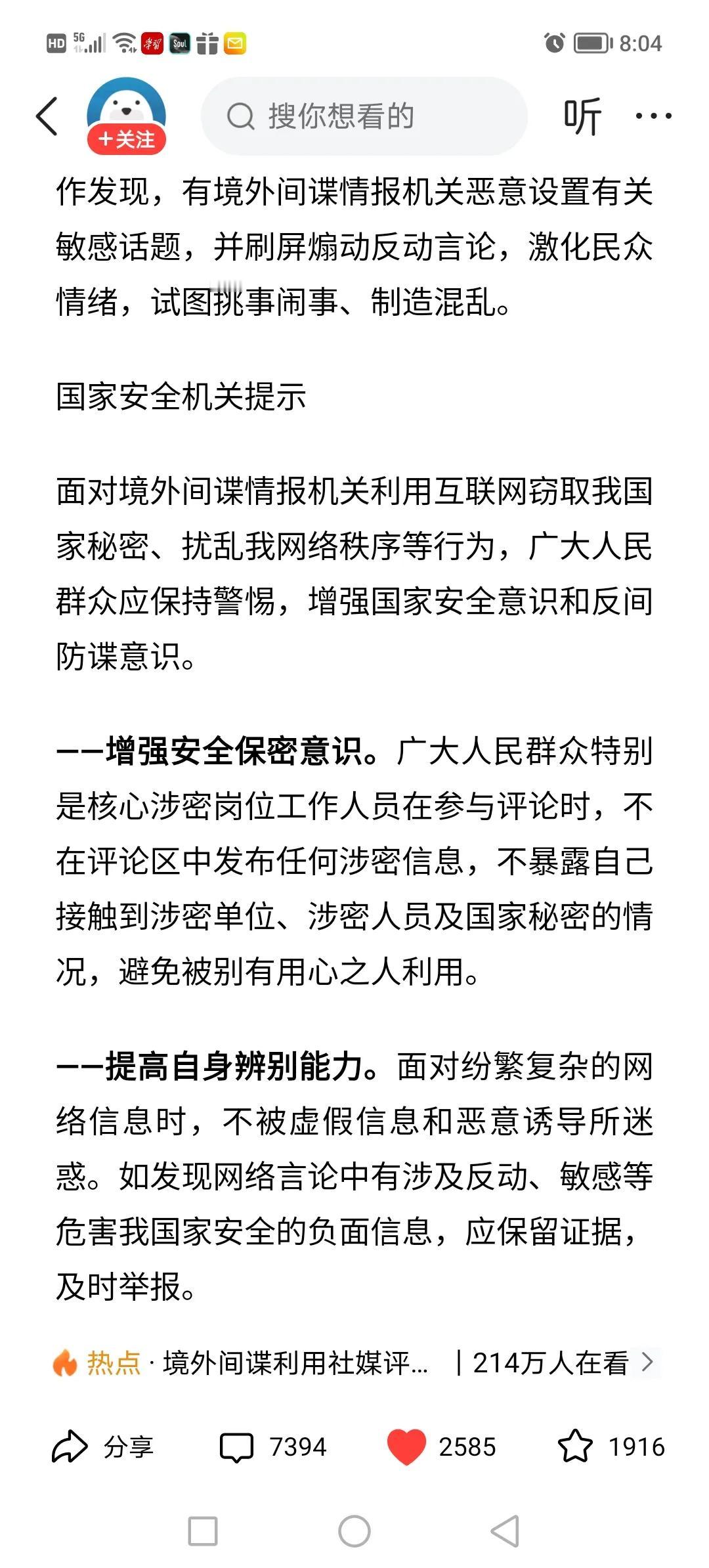网络渗透不可小觑 评论区谍影重重更需警惕 文/科学真奇妙 昨日国家安全部发文,提醒广大网友警惕评论区谍影重重。笔者认为国安部门发文正当其时!从本人近两年观察网上评论区的感觉来说,自从俄乌战争开打以来,西方雇佣水军、台媒绿营水军、中国网络公知不再是蠢蠢欲动,而是直接冲到了网络媒体评论区的最前沿直言不讳地对中国的战略盟友,包括中国官方进行冷嘲热讽。叙利亚巴沙尔政权倒塌后,以色列大举轰炸叙利亚港口基地及军事设施,中国网络评论区里清一色的偏袒以色列,这很不符合常理。这是以色列赤裸裸的侵略行径怎么反而成了为内塔尼亚胡个人英雄主义唱赞歌的事件了?所以,我国网络渗透被带节奏现象不可小觑,评论区谍影重重啊。广大网友需要注意的事项有: 1,刺探情报。故意发布话题,引诱评论区里给答案。 2,散布流言,挑拨离间。譬如美国财政部长耶伦以中国工资薪酬太低为由头,在中国散布加工资言论。再如,欧美新能源车竞争不过中国,开始散布环保无用论,新能源车不如传统燃油车等言论。绿色环保概念最早是西方国家提出来的,现在中国走在绿色环保的前列,欧美又想改变游戏规则,带偏节奏作为中国网民必须擦亮眼睛! 3,激化茅盾,挑起争端。在涉新疆,涉台海,涉南海,涉东海,涉中俄边界等敏感问题上说三道四,挑唆闹事。 4、带偏节奏。对国家政策,发展战略,内政外交,故意错误解读,暗地里引发民众对国家的不满,产生带偏节奏的效果。 5、污蔑、诋毁和抹黑。抹黑诽谤英雄,杜撰或篡改历史故事,以野史形式开展诋毁。 6、宣扬西方的价值观。倡导西方国家的政治、宗教、民主、经济、享乐、经济政策或观念。 7、拿西方的大帽子压人。譬如XXX大奖,唯西方国家盖章认证。 8、把美帝西方国家的“小院高墙”当成世界主流进行吹嘘,讥讽东方大国不能融入美帝西方国家主导的朋友圈子等。 广大人民群众如发现疑似境外间谍在社交媒体评论区刺探我涉密信息,或是散播具有煽动性、颠覆性言论等可疑线索,可通过12339国家安全机关举报受理电话、网络举报平台(iconwww.12339.gov.cn)、国家安全部微信公众号举报受理渠道或者直接向当地国家安全机关进行举报。