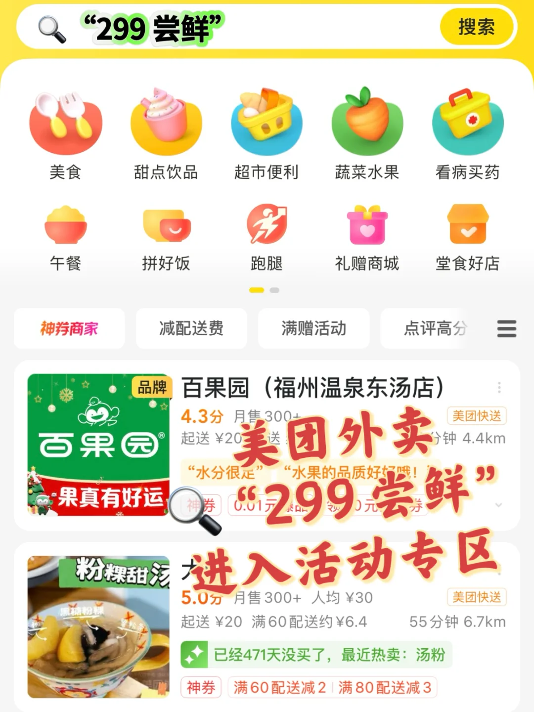 ❗️12.21-12.25 美团外卖🔍“299 尝鲜”进入活动专区