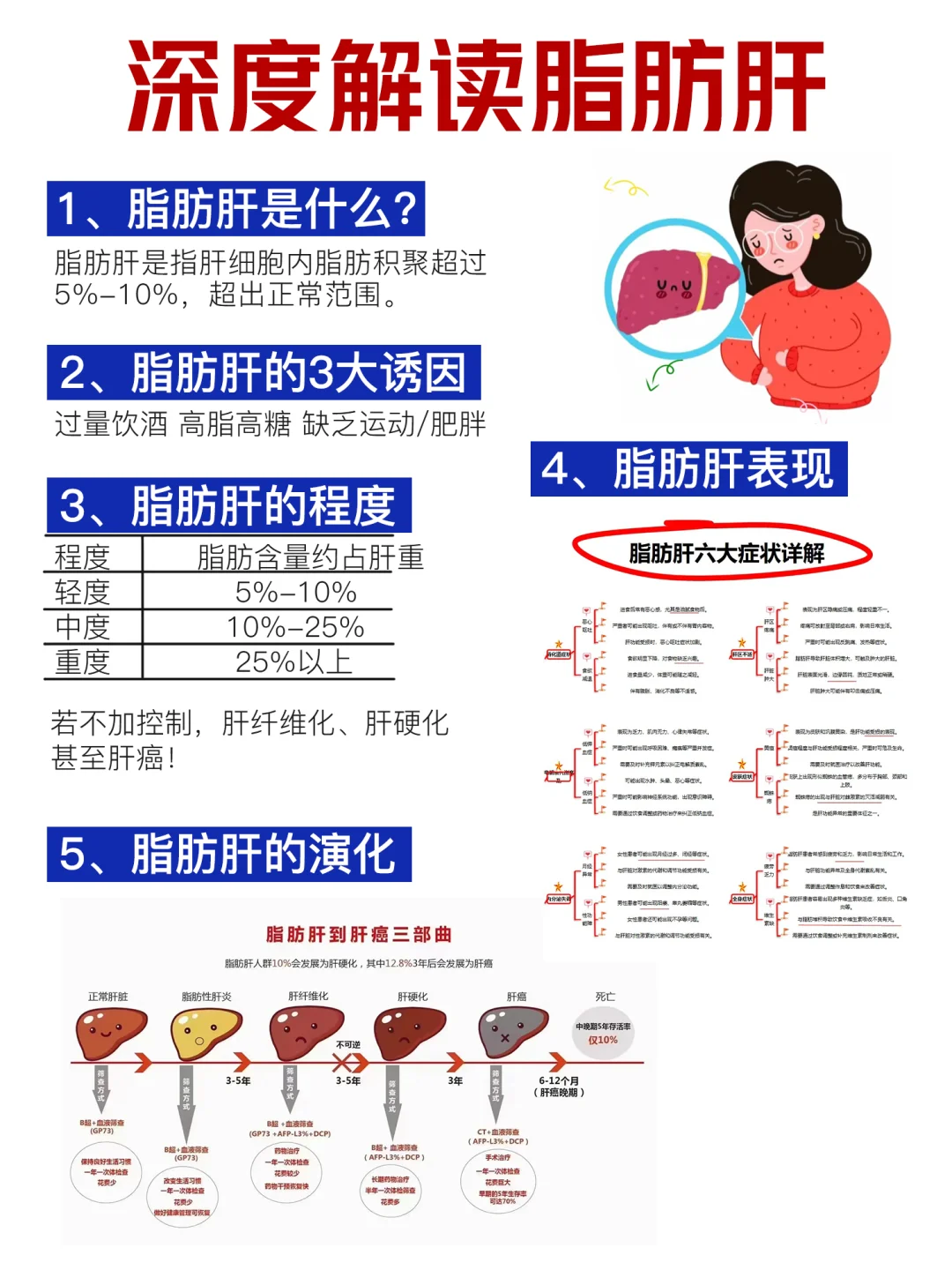 正常脂肪肝表现出来是症状不是很明显,它可怕的是并发症❗像是糖尿病、心血管问题、内分泌疾病,还有发展之后的肝硬化,肝癌...