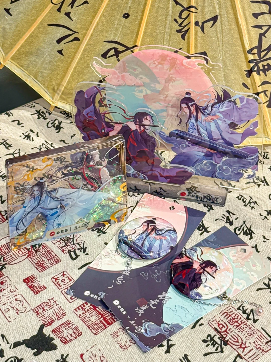 169元套餐:含周边3个,包括魔道卷轴挂画/魔道流沙亚克力砖/魔道组合立牌3选1,魔道挂链吧唧*2(固定)