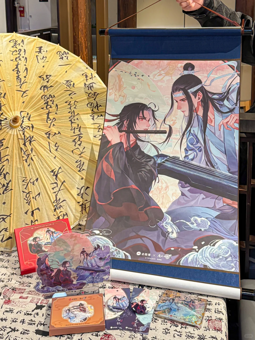 主题门店还在筹备中!1月1日就可以上线了,听说还有忘羡现场给你写新年请柬、还有限定的家徽印章和贴纸,全是魔道祖师的绝美柄图🎭大磕一波忘羡CP!!