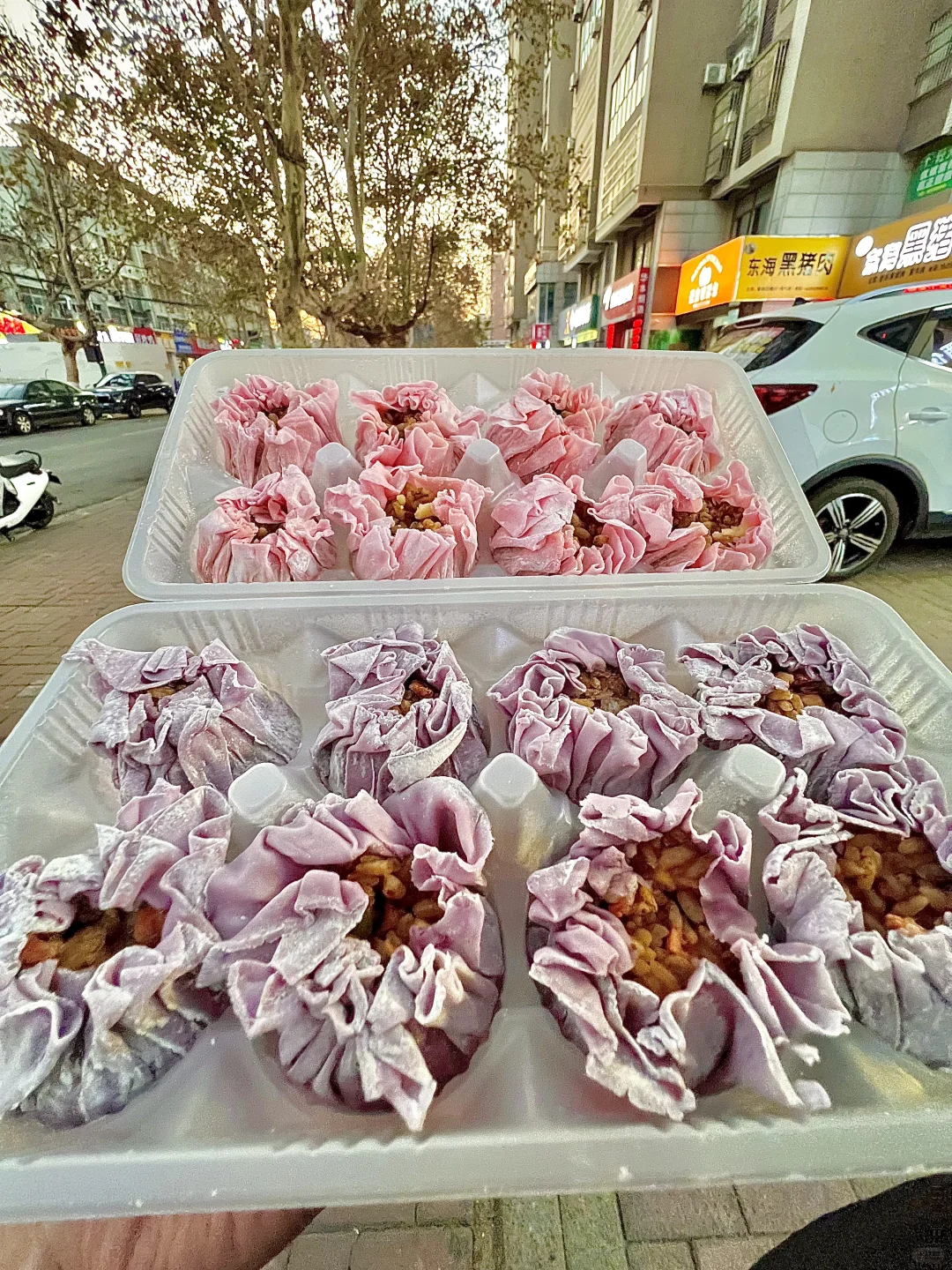 海州西小区吃到糯叽叽香喷喷的纸皮烧麦啦[派对R] 老板给它起了一个很好听的名字「云朵烧麦」 皮薄馅大,用料十足,还非常漂亮~ 🩷粉色的是芝士蛋黄馅 💜紫色的是广式腊肠馅 本人更爱广式腊肠,口味更浓郁! 芝士蛋黄的口感层次相对丰富!! 糯叽叽香喷喷的一整个爱住!nice🤤 ⚠️生食打包,不介意时间的可等老板帮忙蒸好~ -