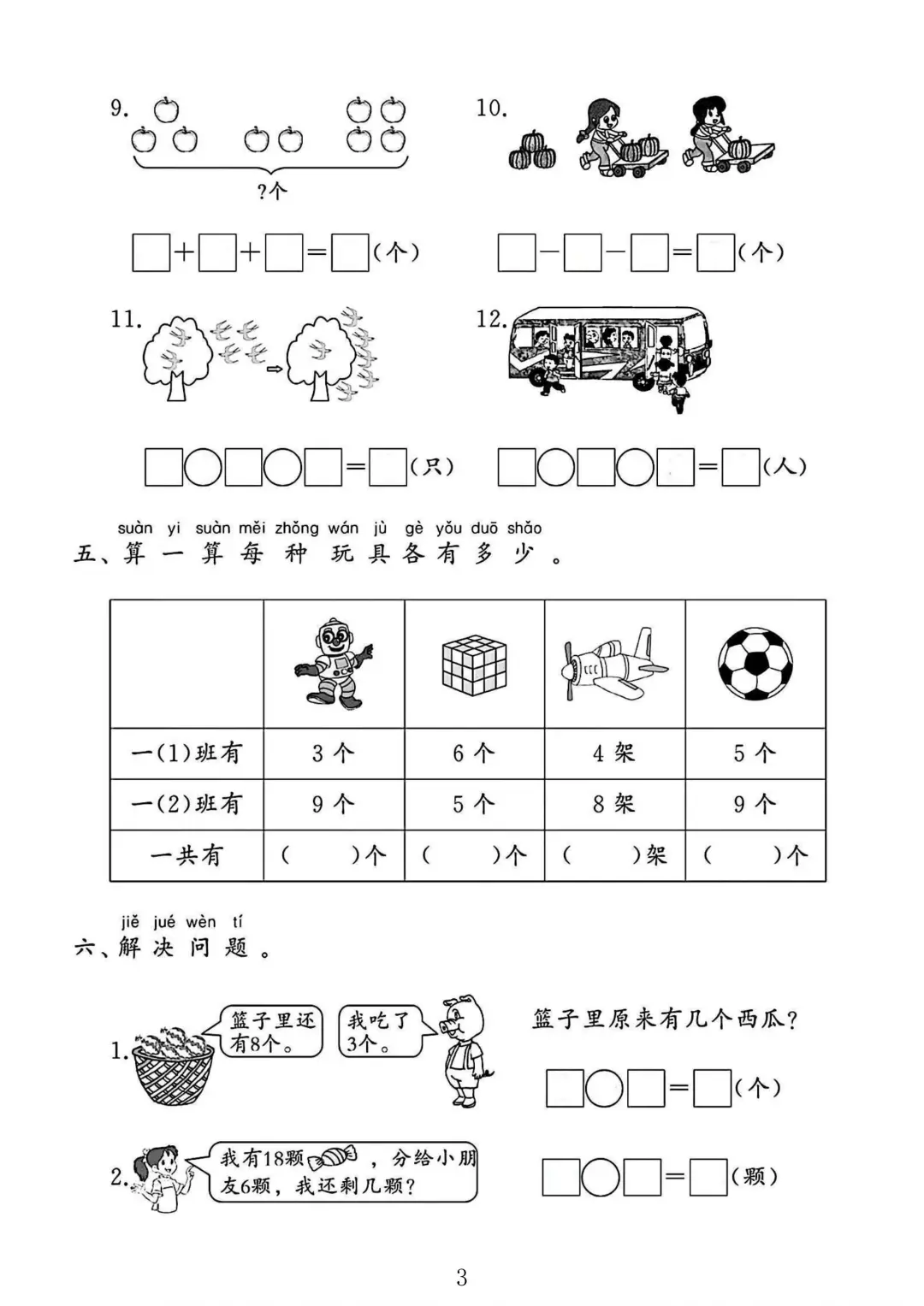 一年级数学上册期末专项复习 《解决问题》