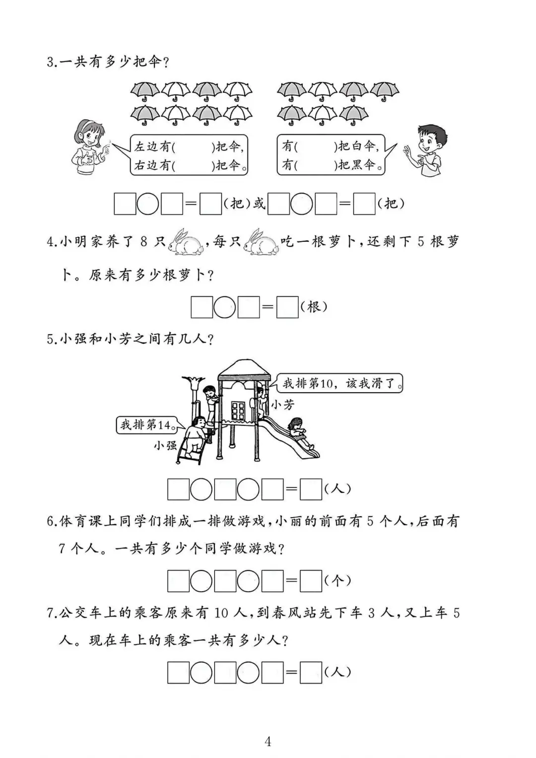人教版 一年级上册数学 期末专项练习 期末考试 解决问题 电子版可打印