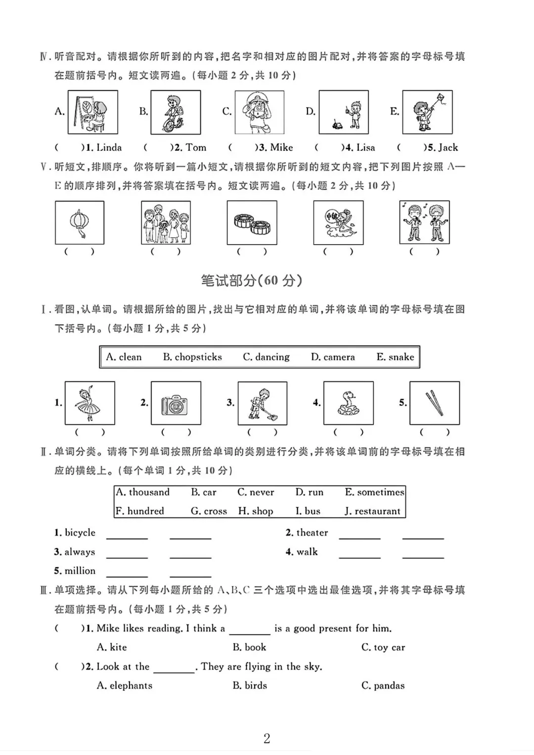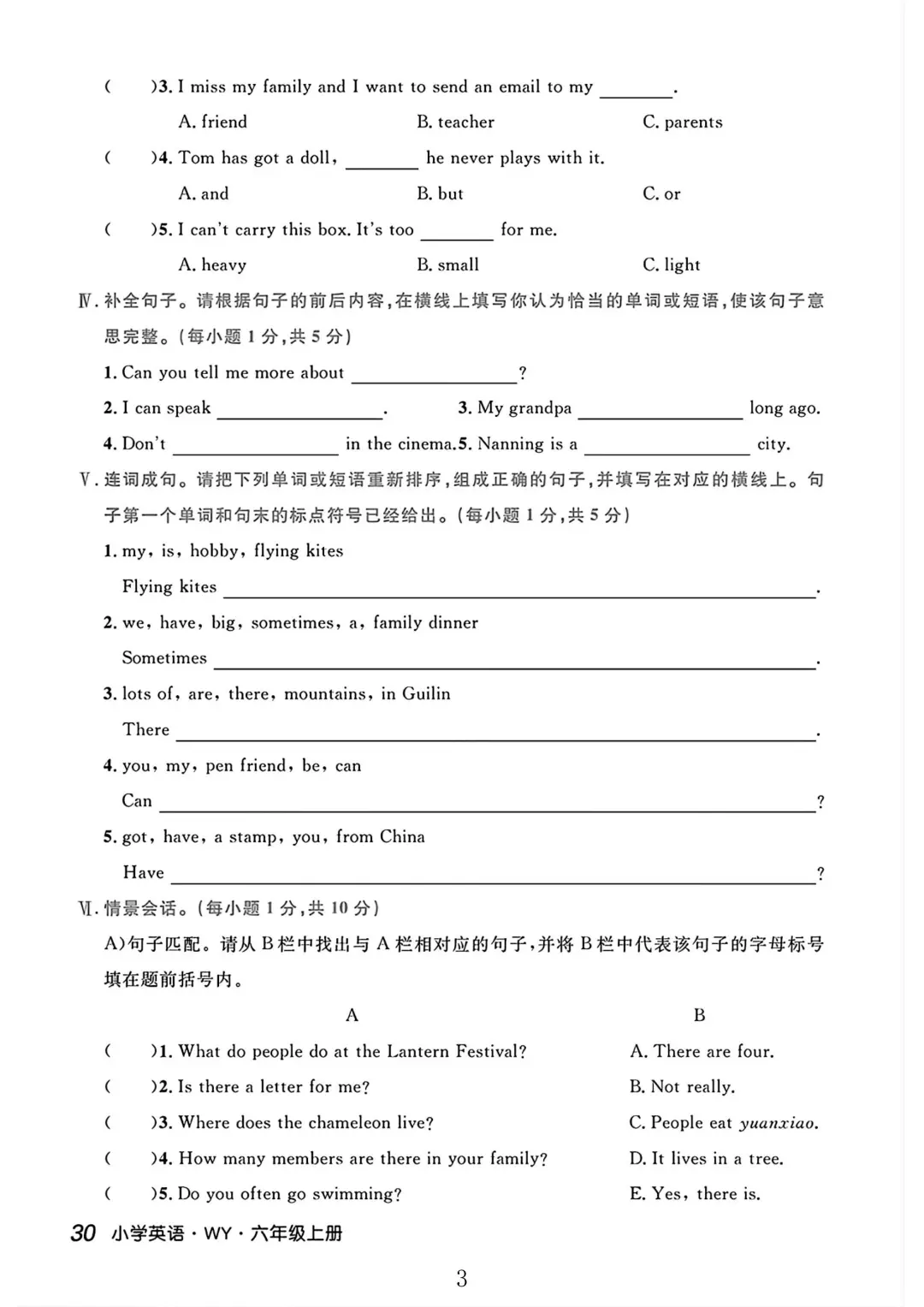 外研版六年级英语上册期末试卷 2