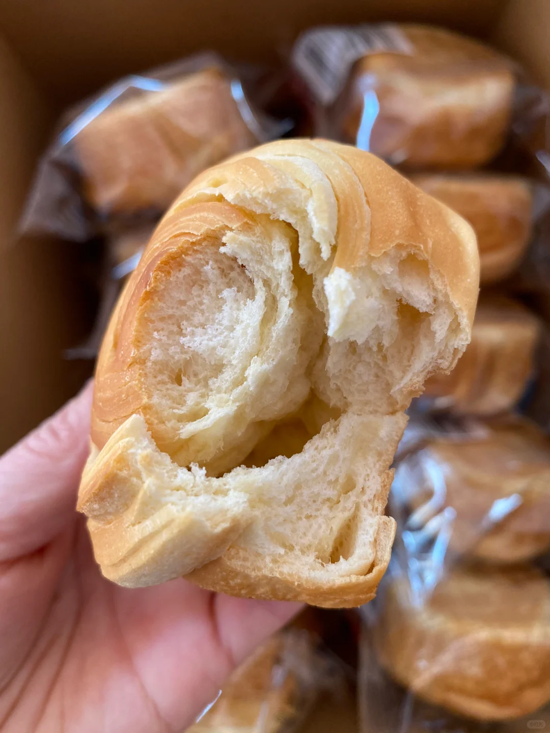 奶呼呼的手撕面包!吃起来微微甜!一点也不会甜腻的那种!它不是那种软趴趴的!是那种带点酥皮有嚼劲的!一层一层的!很耐撕!平时不想做早餐的话!直接拿着就去上班上学~快手早餐拿捏了!早八人也可以多睡半个小时了!