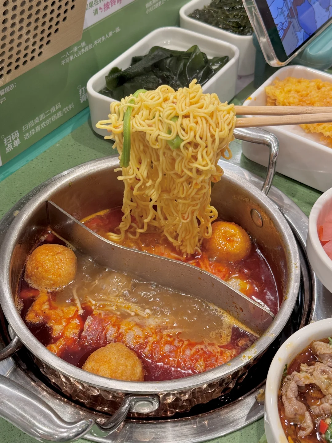 下沙!下沙!终于开了!!!! 学生党的课后穷鬼一人食小火锅🔥!!! 真的好适合喔这种i人啊…店里还有手机支架! 放着我最爱的动画片边吃小火锅好幸福啊…. 锅底➕调料才9.9r!肥牛9.9r!!! 其他菜品都是3r、5r、7r!柠檬水4r!!! 真的便宜哭了😭还有免费的泡菜、凉粉、米饭🍚 不吹不黑!人均30就能吃到扶墙出了!!!