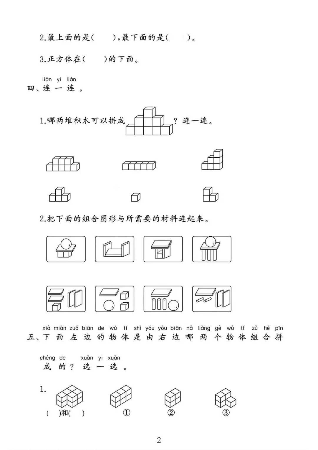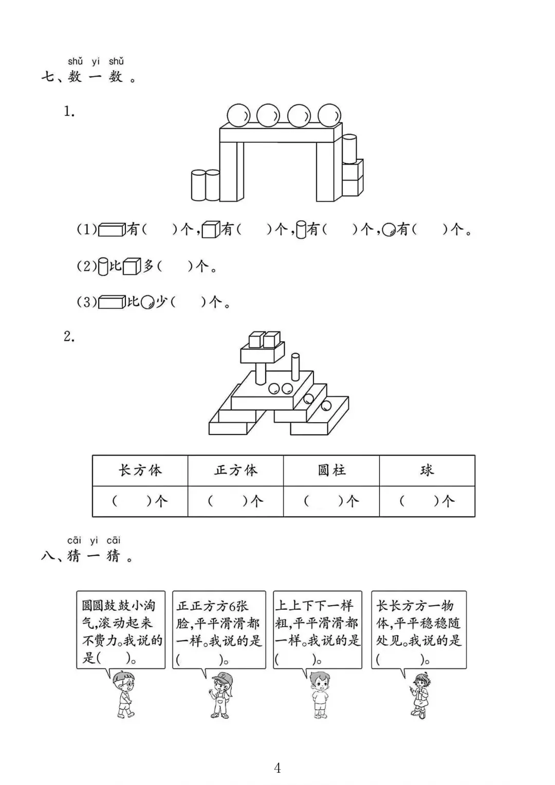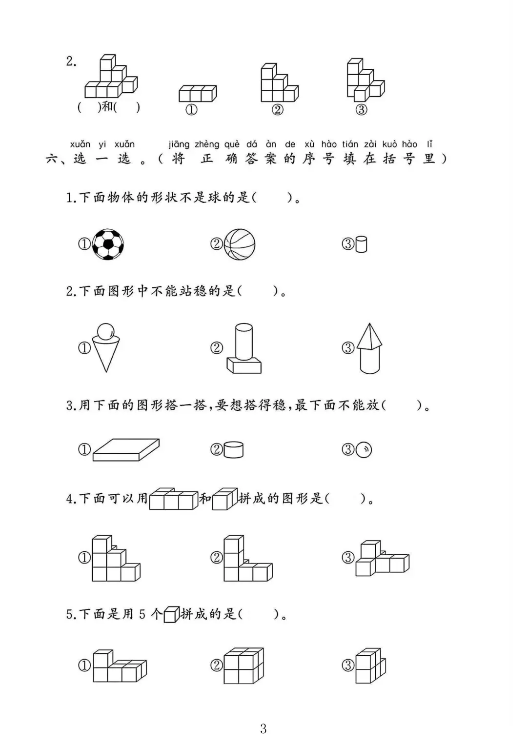 人教版 一年级上册数学 期末考试 期末专项 立体图形 电子版可打印