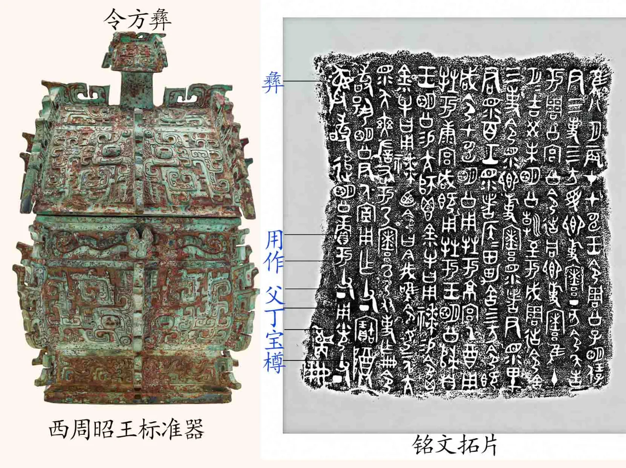 西周昭王标准器,令方彝铭文:用作父丁宝樽彝。