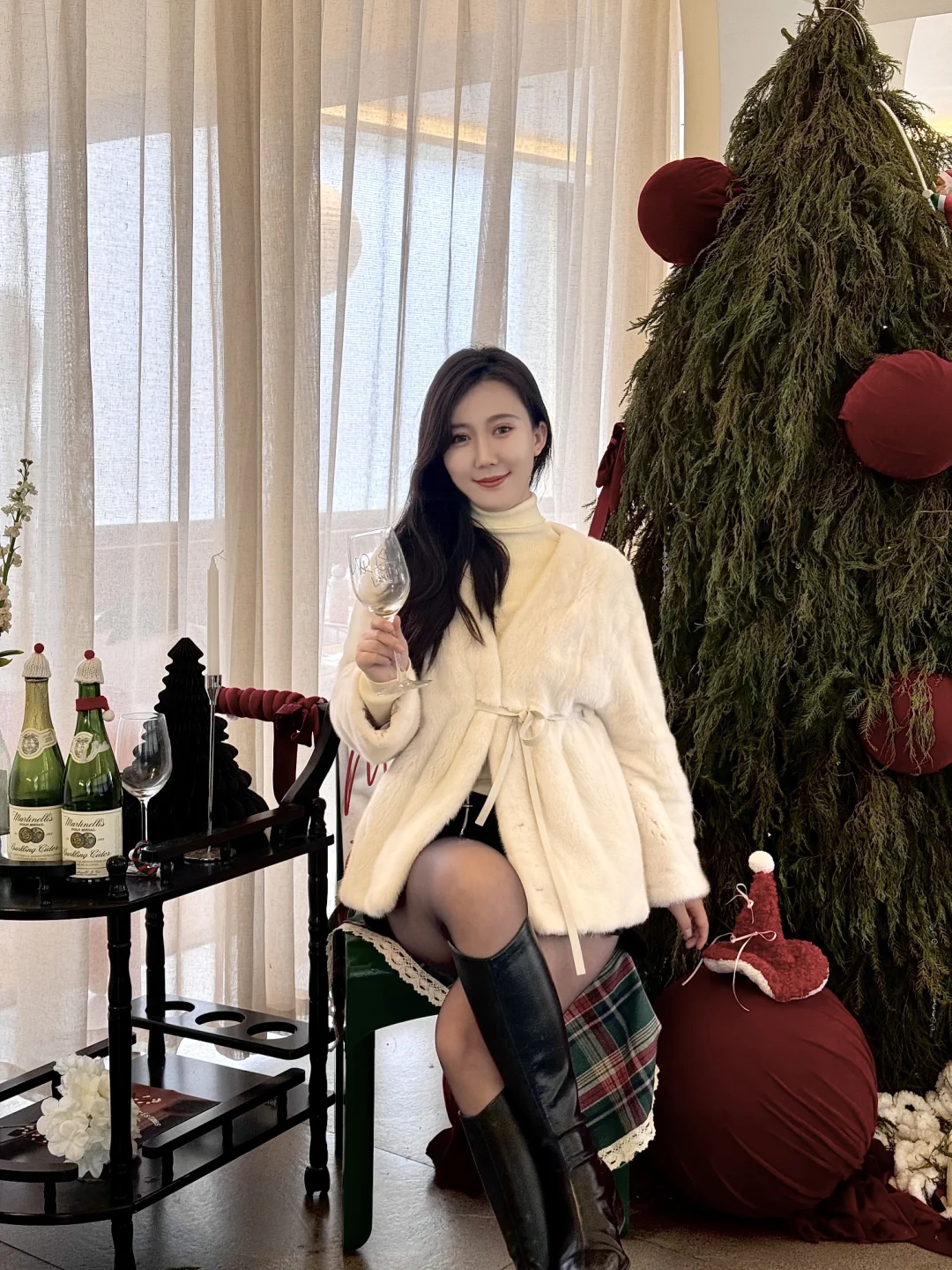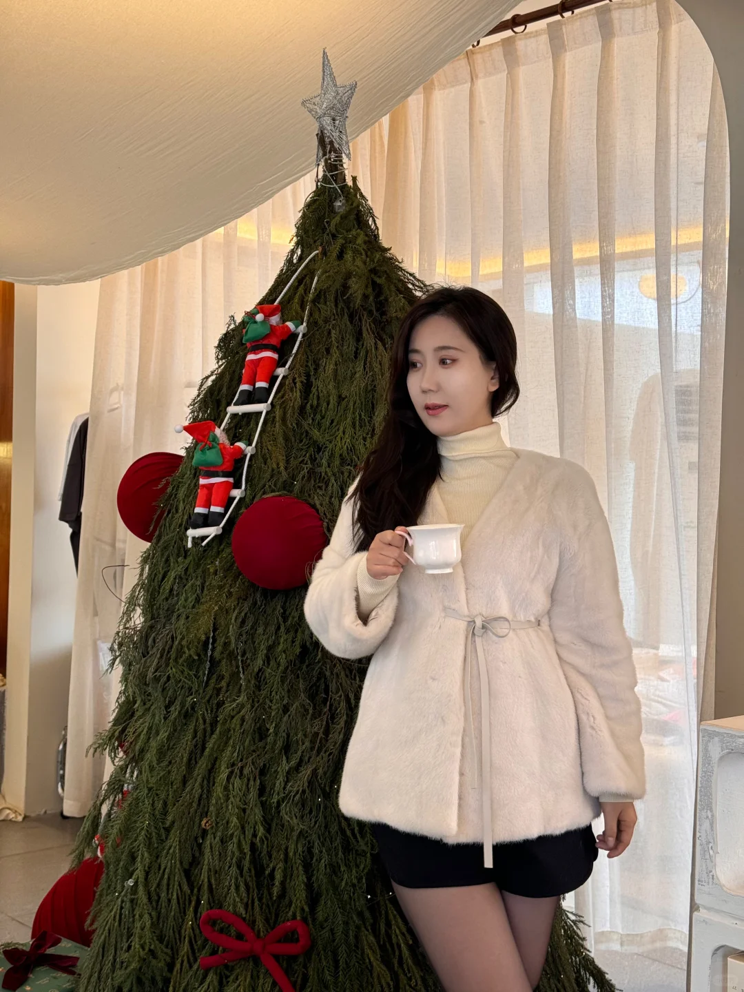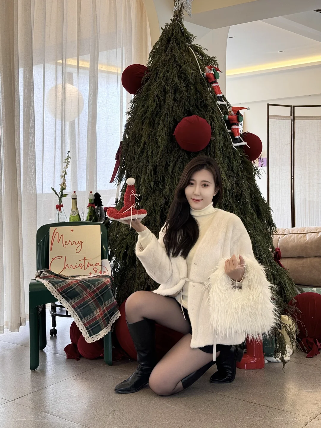 圣诞节就适合穿白色的毛毛拍照🤳