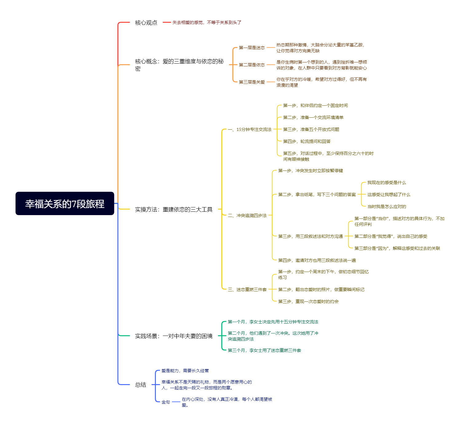 马歇尔说了个特别颠覆的观点:失去相爱的感觉,不等于关系到头了。他说我们用一个“爱”字,其实在说三种完全不同的情感:迷恋的激情,依恋的亲密,还有关爱的亲情。很多关系出问题,不是爱消失了,是依恋这层断了。他提出的七个步骤,就是要帮我们把这条线接回去,重新找回那种感觉。