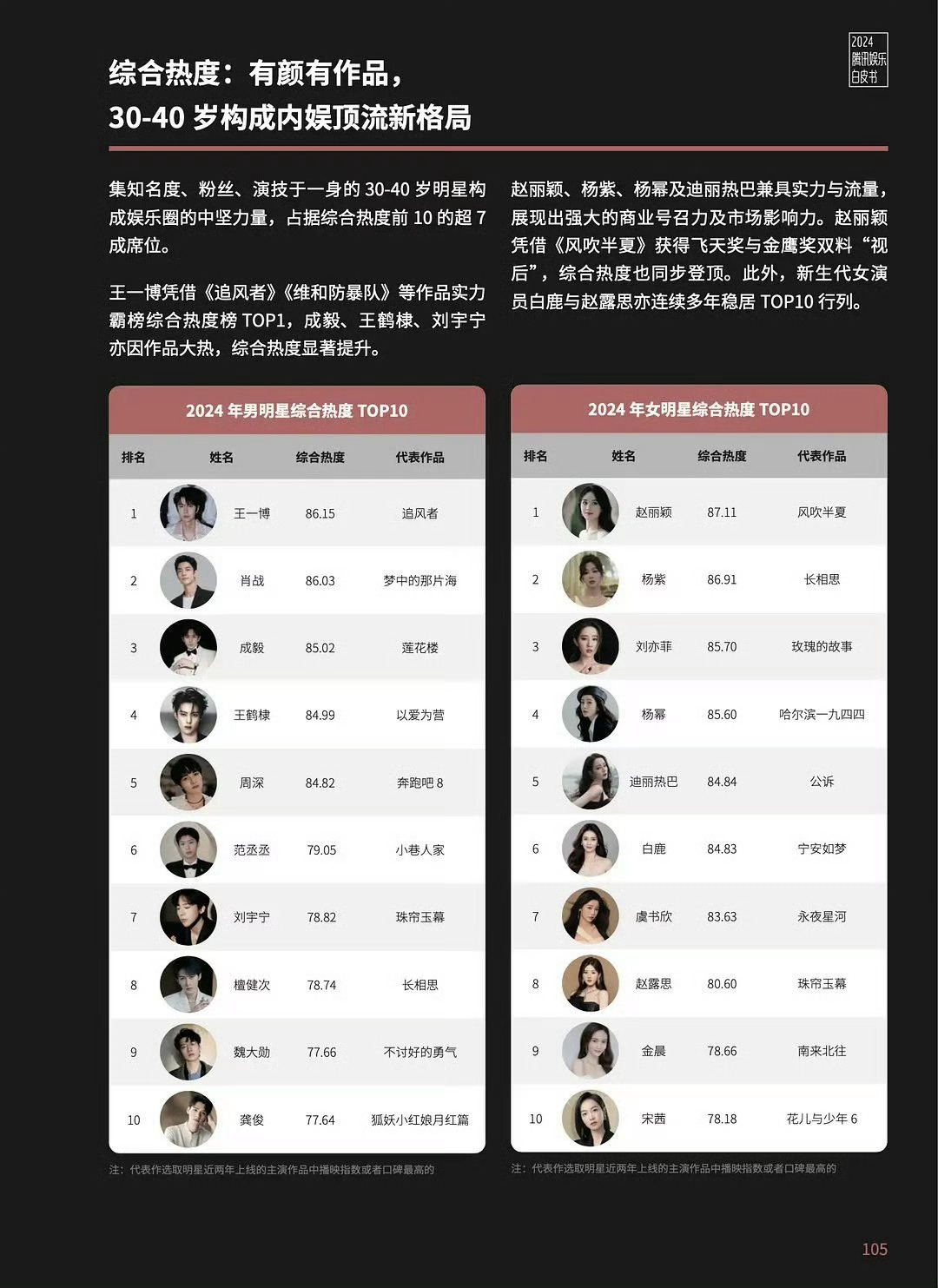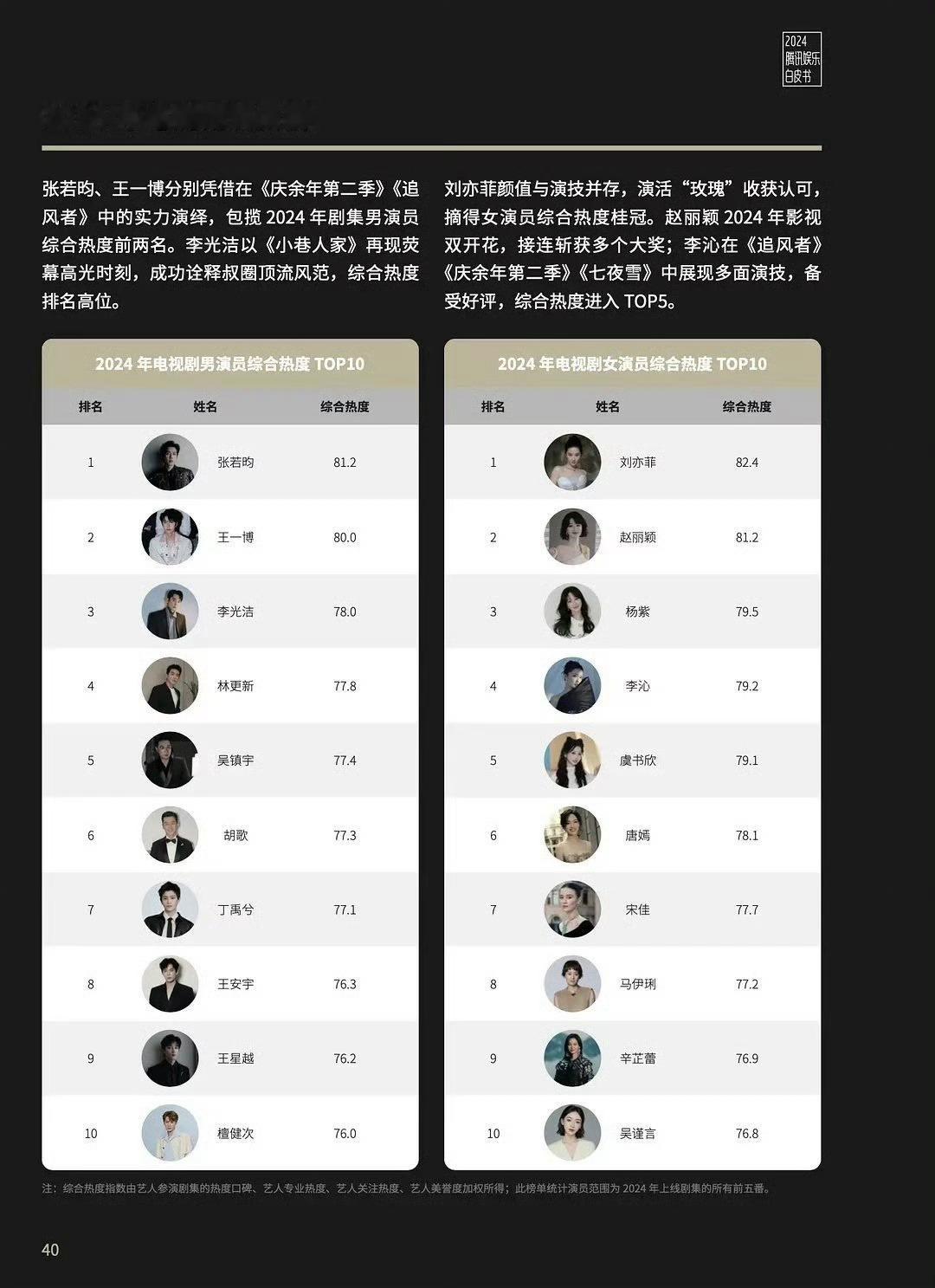 女演员综合热度:刘亦菲、赵丽颖、杨紫