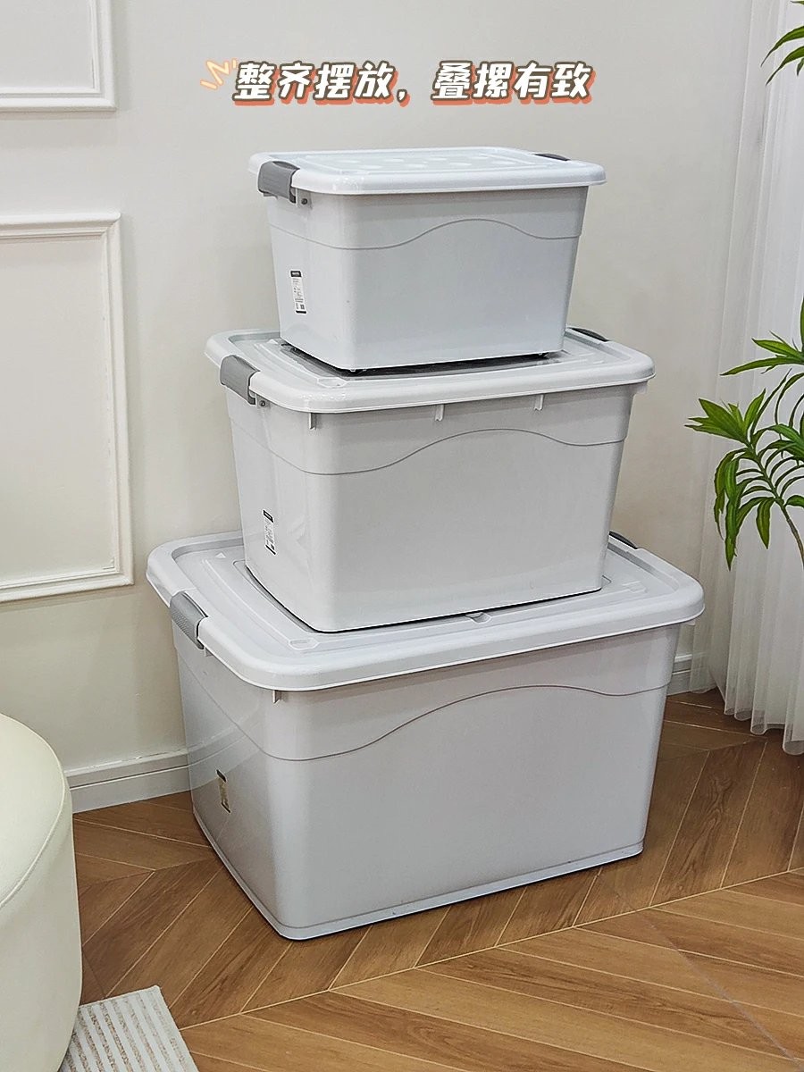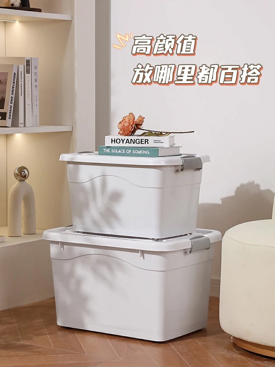 非常有性价比的一款收纳箱 奶呼呼的颜值,家庭百搭款 有大中小规格,可以放玩具、杂物、衣服、被褥 盖子上有把手,防尘防潮 叠落放起来很稳固 宝子们快冲吧~ 收纳箱大容量收纳箱超大号收纳箱衣服收纳箱