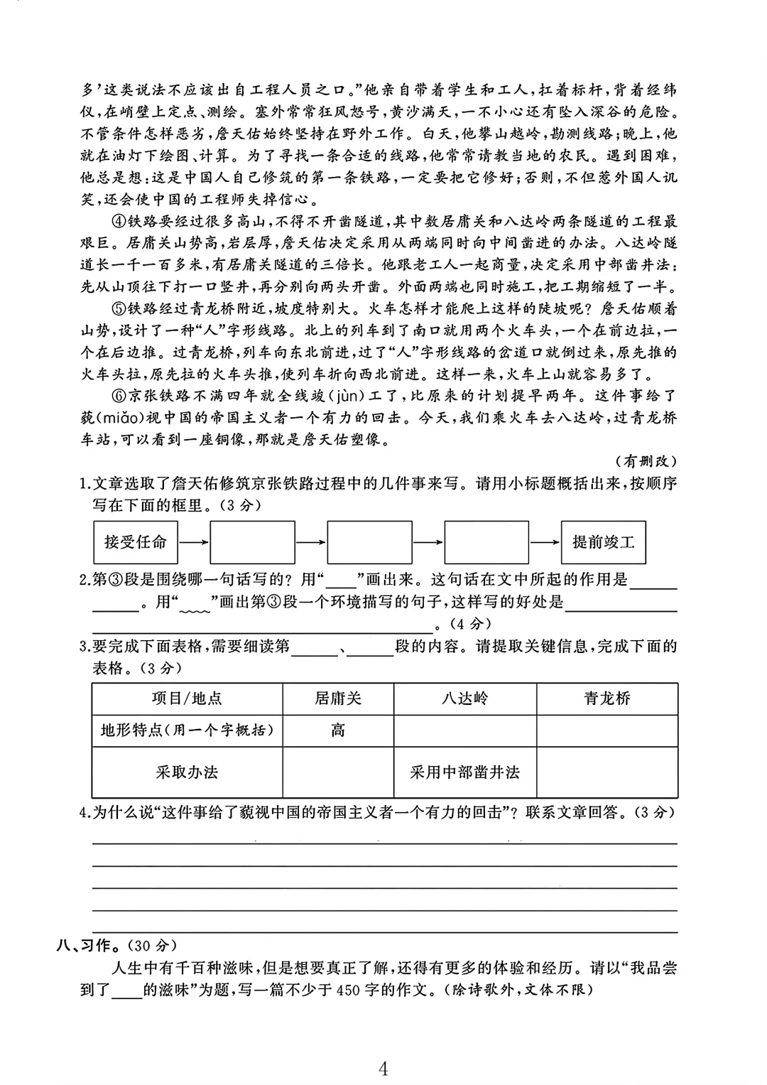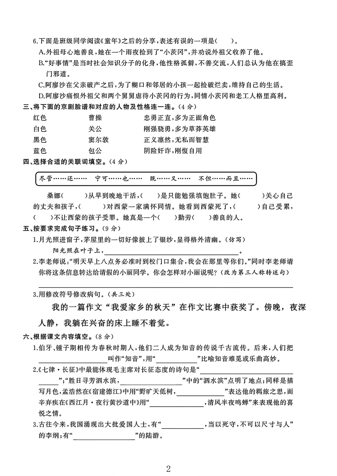人教版 六年级上册语文 期末考试 期末 试卷 电子版可打印