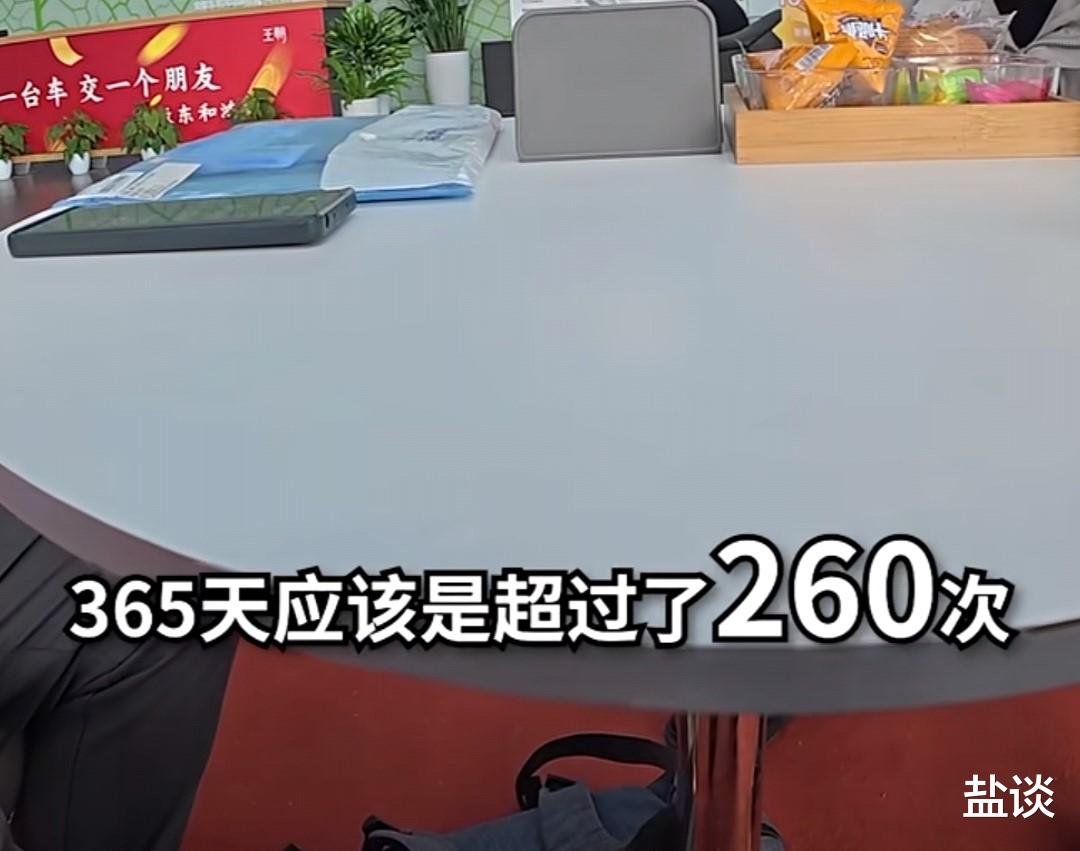 正如网友评论说:这人一年只来260次,估计是因为还有100天是节假日,他不用出门上班。所以,260天不是他的极限,是上班时间的极限。