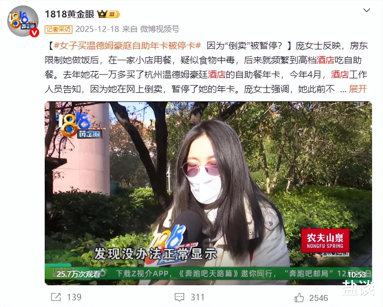 一位年轻女孩儿在某五星级酒店买了自助餐年卡,找“1818黄金眼”投诉,说自己被酒店拉黑了。听着十分委屈,记者一了解才知道,原来是女孩儿利用酒店“就餐可带一位朋友”的福利,无视酒店不能售卖权益的规则,在二手平台上倒卖用餐权益。经酒店多次提醒,拒不改正,酒店无奈,为了维护自身利益只能把女孩拉黑。