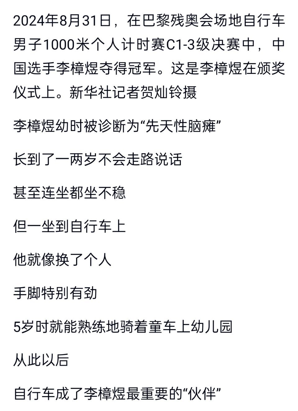 残奥会冠军夸小小的我好看 先天性脑瘫患者、获得残奥会四连冠6枚金牌的自行车运动员李樟煜发文,说看了电影《小小的我》,非常好看,看到春和就像看到自己,“电影里春和说的话也完全是我的心声,即便再渺小,再破碎的个体,也是完整的我。很喜欢这部电影!也谢谢大家看到小小的我们!”