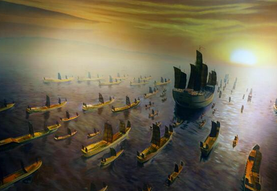 明朝初期,国力强盛,明成祖朱棣为了宣扬国威、加强与海外各国的联系以及寻找建文帝下落等原因,派遣郑和率领船队下西洋。从 1405 年开始至 1433 年,郑和共进行了七次航行,足迹遍及印度洋沿岸 30 多个国家,最远到达非洲东海岸。郑和下西洋不仅促进了中外文化交流和贸易往来,也展示了明朝强大的国力和先进的航海技术.